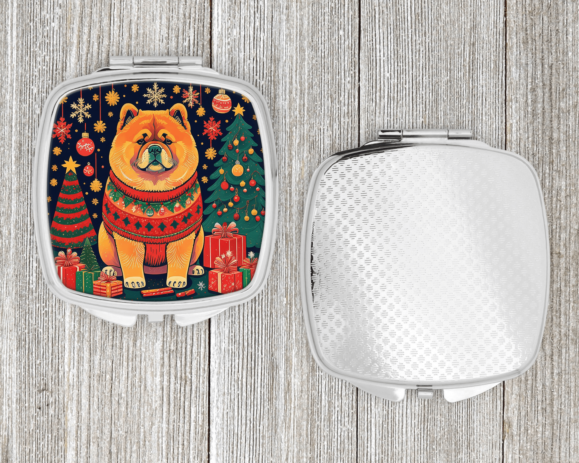 Compact Mirror featuring breed specific Chow Chow artwork. Celebrate Christmas with this Christmas Compact Mirror. Introducing our Square Compact Mirror, a blend of elegance, functionality, and compactness, perfect for on-the-go touch-ups. This Silvertone metal mirror, with dimensions of 2.75 inches x 3 inches x .3 inches, fits effortlessly into your purse, handbag, or pocket, ensuring that you can check your appearance anytime, anywhere. Our compact mirror stands out with its eye-catching artwork on the front, adding a dash of style to this practical accessory. It is more than just a mirror; it's a statement piece that reflects your personality and aesthetic. When opened, this compact reveals two mirrors inside, doubling your perspective for precise touch-ups. The Silvertone metal construction ensures durability while maintaining a lightweight feel, making it an ideal everyday carry item. Whether you're rushing to a meeting, prepping for a dinner date, or just need a quick check on your look, our Square Compact Mirror is your reliable companion. Experience the perfect blend of style and practicality with this must-have accessory.