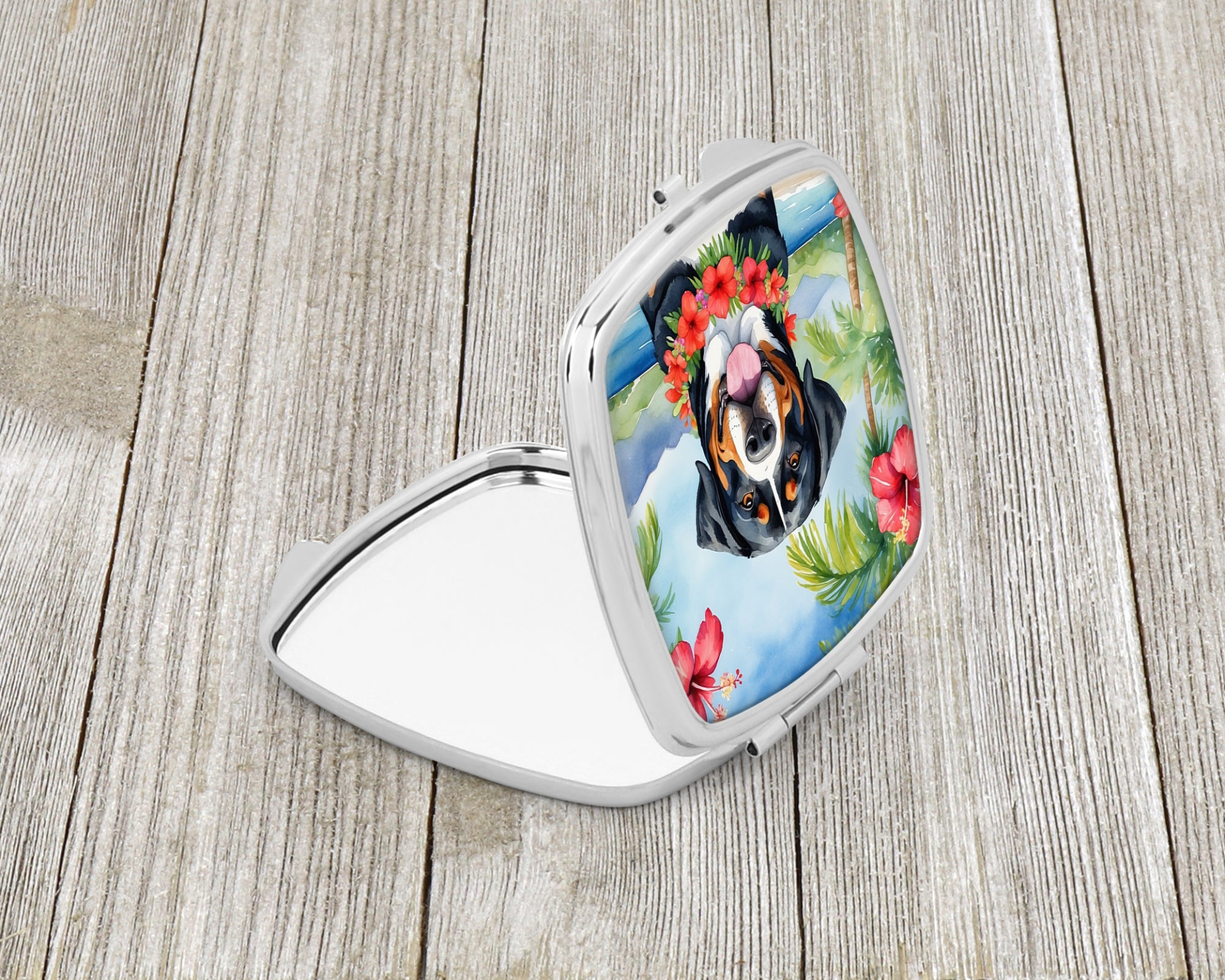 Compact Mirror featuring breed specific Greater Swiss Mountain Dog artwork. Introducing our Square Compact Mirror, a blend of elegance, functionality, and compactness, perfect for on-the-go touch-ups. This Silvertone metal mirror, with dimensions of 2.75 inches x 3 inches x .3 inches, fits effortlessly into your purse, handbag, or pocket, ensuring that you can check your appearance anytime, anywhere. Our compact mirror stands out with its eye-catching artwork on the front, adding a dash of style to this practical accessory. It is more than just a mirror; it's a statement piece that reflects your personality and aesthetic. When opened, this compact reveals two mirrors inside, doubling your perspective for precise touch-ups. The Silvertone metal construction ensures durability while maintaining a lightweight feel, making it an ideal everyday carry item. Whether you're rushing to a meeting, prepping for a dinner date, or just need a quick check on your look, our Square Compact Mirror is your reliable companion. Experience the perfect blend of style and practicality with this must-have accessory.