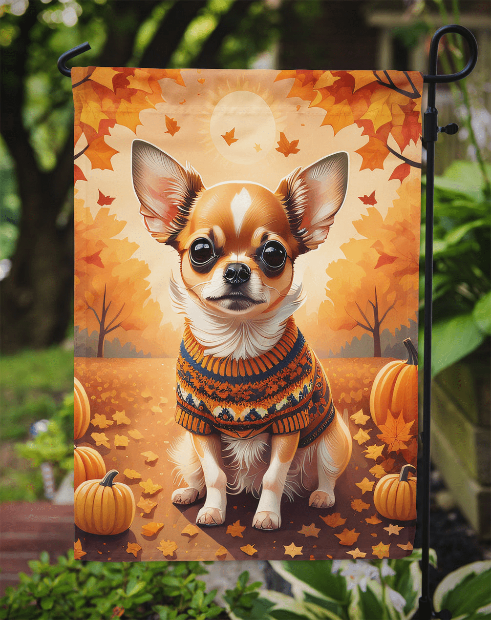 Elevate your outdoor space with a Chihuahua Fall Garden Flag that celebrates breed-specific charm. Crafted to endure through the seasons, this two-sided flag brings warmth to your garden, patio, or yard with vibrant, detailed artwork. Proudly made in the USA, it offers beauty and durability so your space feels inviting from every angle. Perfect for pet parents who want style + comfort in their outdoor decor.