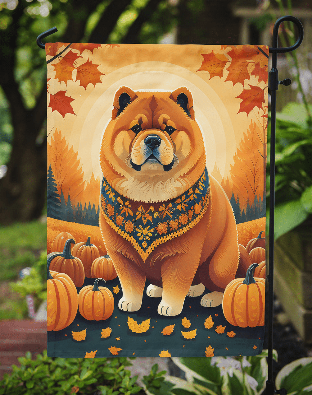 Chow Chow Fall Garden Flag – Caroline's Treasures Decorative Garden Flag, USA-made, weather-resistant two-ply garden flag featuring Chow Chow artwork