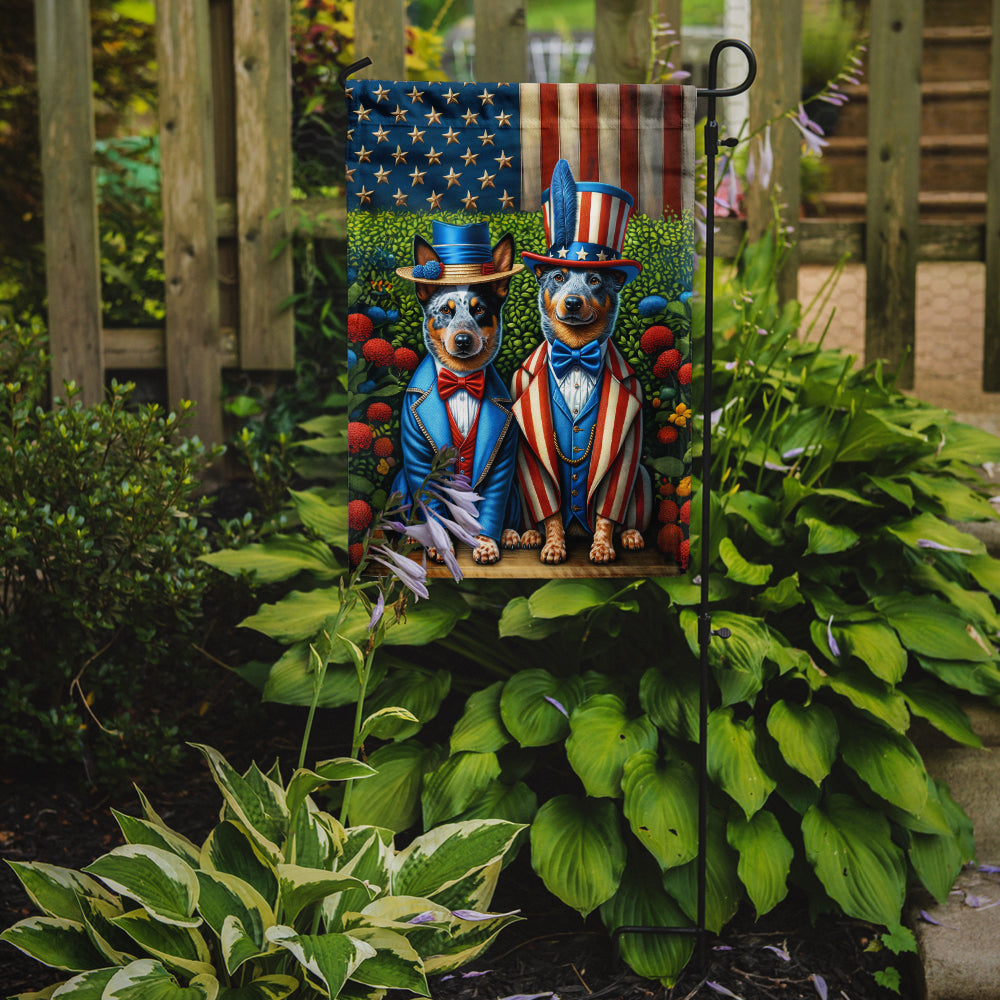 Garden Flag featuring breed specific Australian Cattle Dog artwork. Enhance the beauty of your garden, patio, or yard with Caroline's Treasures Decorative Garden Flag, proudly made in the USA. Crafted from two pieces of thick, double-sided polyester fabric, this 2-ply garden flag is designed to withstand various weather conditions, making it water-resistant and weatherproof. Featuring correctly readable words on both sides, this garden flag offers a delightful visual experience from any angle. With its heavier weight, it stands out among other garden flags, ensuring stability and durability even in wind, rain, and snow. Measuring approximately 11 1/4 inches by 15 1/2 inches, this flag allows you to personalize your outdoor decor. It comes with a 1 1/2-inch sleeve sewn in, allowing easy attachment to any standard garden flag stand or garden size porch hanger (sold separately). Make a statement in your outdoor space with Caroline's Treasures Decorative Garden Flag, a vibrant and high-quality flag that adds color and personality to your surroundings. Proudly made in the USA, it's a symbol of quality craftsmanship and attention to detail.