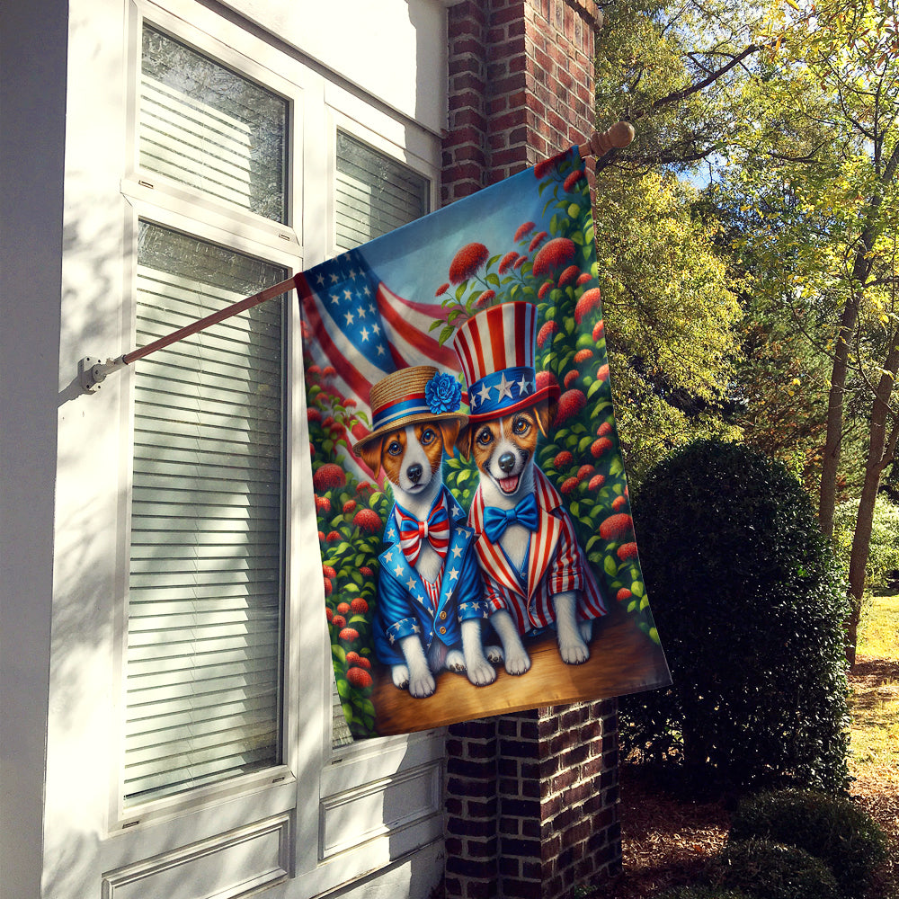 House Flag featuring breed specific Jack Russell Terrier artwork. Presenting our Heavy Duty Polyester House Size Decorative Sleeve Pole Flag, a vibrant addition to enhance the aesthetic appeal of your home. This large decorative flag, measuring approximately 28 x 40 inches, offers ample coverage and visibility. Each flag is meticulously sewn and made individually, ensuring a unique piece that may slightly vary in size. It's a sleeve pole flag, designed to fit a standard decorative flag pole effortlessly. Please note that the flag pole and bracket are not included and should be purchased separately. What sets our flag apart is its dual-sided print. The design is mirrored on both sides of the fabric, allowing for uniform visibility regardless of the angle. Printed in full color, our flag showcases vibrant hues that truly stand out. To ensure lasting vibrancy and durability, the dyes are heat-set into the fabric. This ensures your flag remains bright and captivating through various weather conditions. Elevate the look of your home with our Heavy Duty Polyester House Size Decorative Sleeve Pole Flag!
