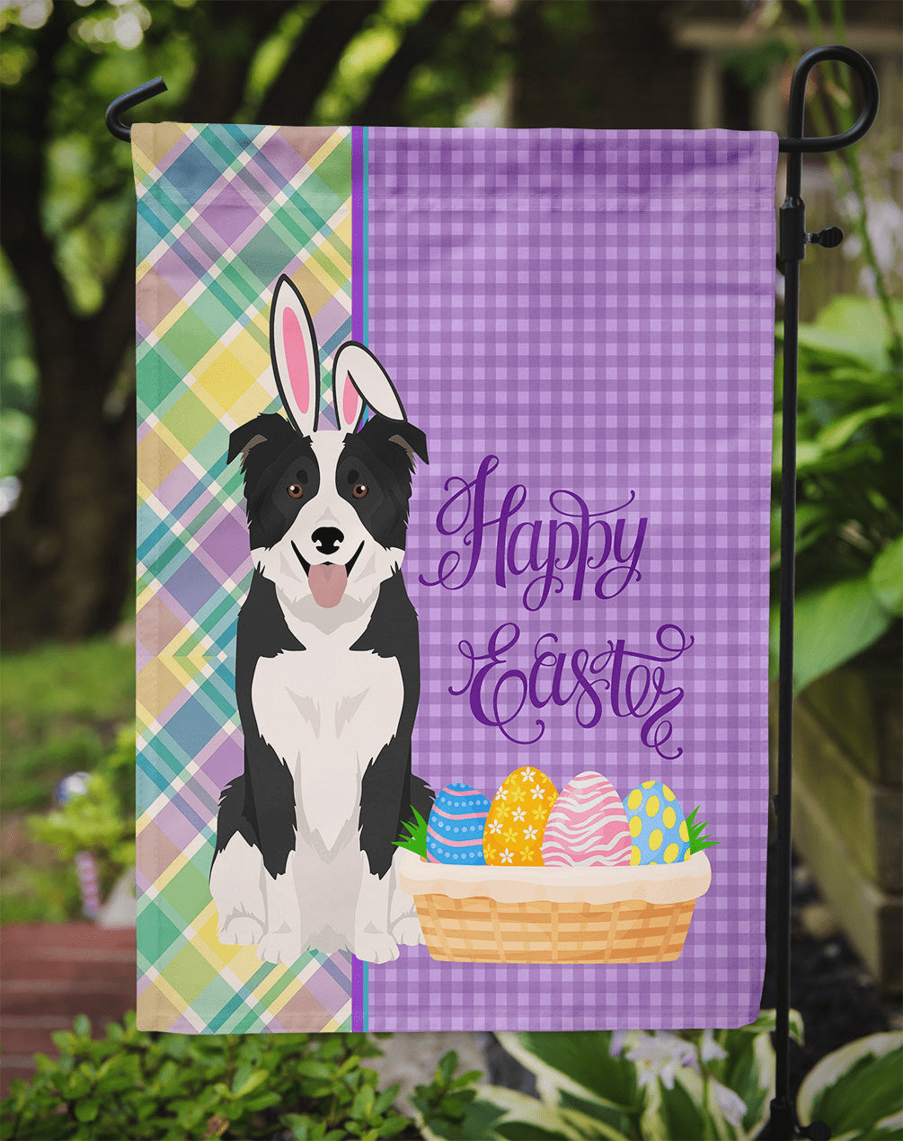 Garden Flag featuring breed specific Border Collie artwork. Celebrate Easter with this Easter Garden Flag. This Garden Flag is from Caroline's Treasures collection Easter Egg Hunt. Enhance the beauty of your garden, patio, or yard with Caroline's Treasures Decorative Garden Flag, proudly made in the USA. Crafted from two pieces of thick, double-sided polyester fabric, this 2-ply garden flag is designed to withstand various weather conditions, making it water-resistant and weatherproof. Featuring correctly readable words on both sides, this garden flag offers a delightful visual experience from any angle. With its heavier weight, it stands out among other garden flags, ensuring stability and durability even in wind, rain, and snow. Measuring approximately 11 1/4 inches by 15 1/2 inches, this flag allows you to personalize your outdoor decor. It comes with a 1 1/2-inch sleeve sewn in, allowing easy attachment to any standard garden flag stand or garden size porch hanger (sold separately). Make a statement in your outdoor space with Caroline's Treasures Decorative Garden Flag, a vibrant and high-quality flag that adds color and personality to your surroundings. Proudly made in the USA, it's a symbol of quality craftsmanship and attention to detail. This Garden Flag is from Caroline's Treasures Dogs category of products.