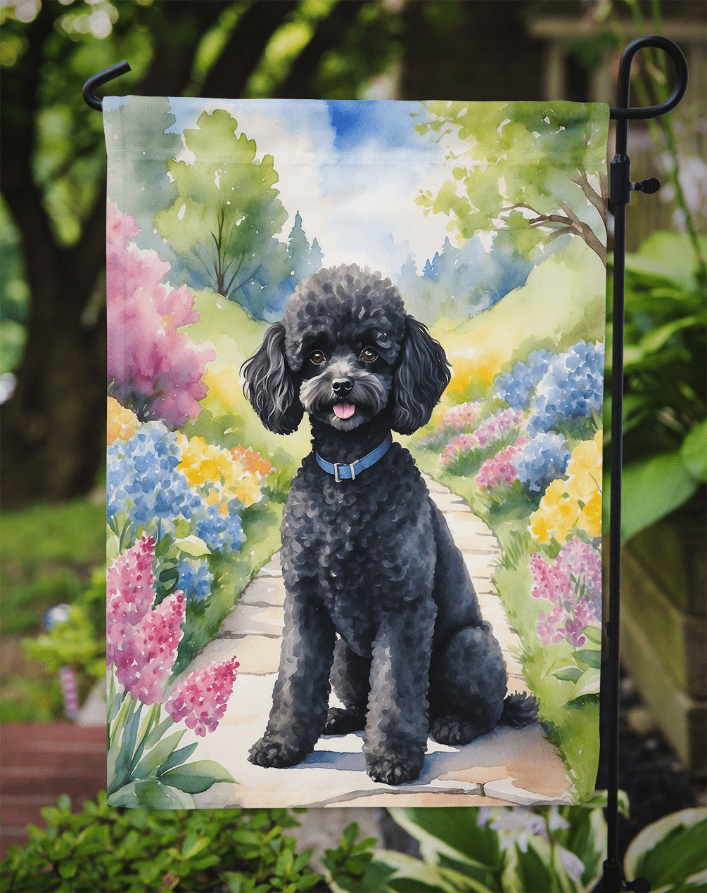 Black Poodle Spring Path Garden Flag