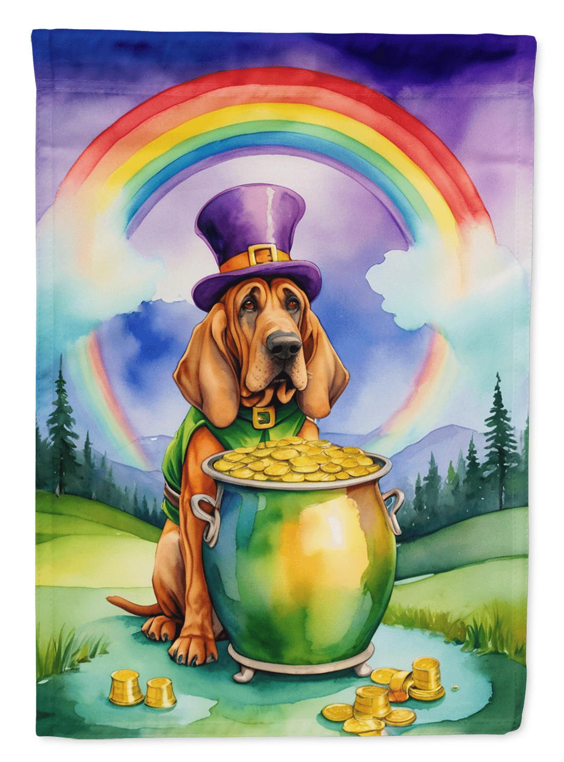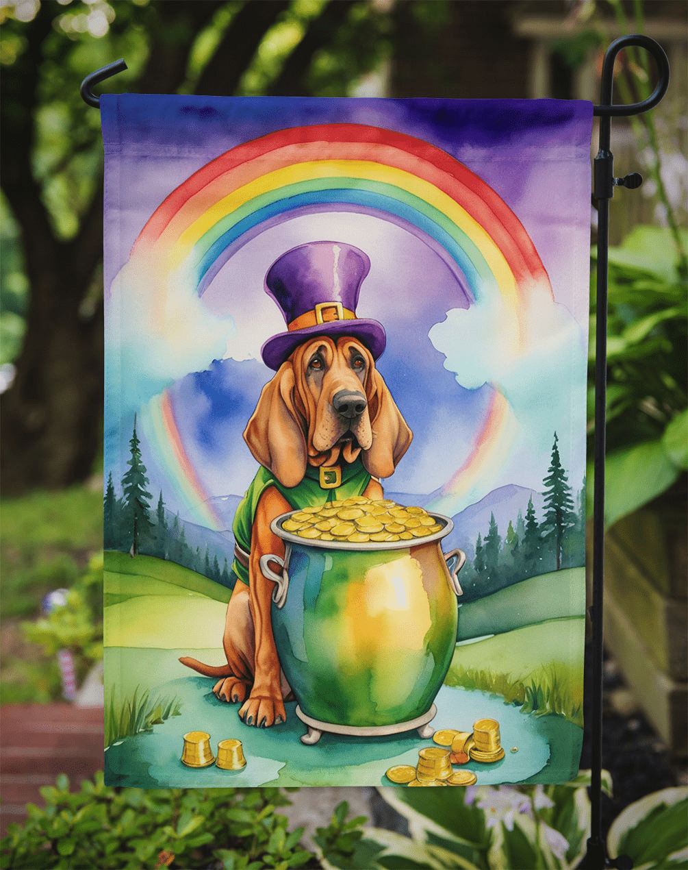 Garden Flag featuring breed specific Bloodhound artwork. Celebrate St Patrick's Day with this St Patrick's Day Garden Flag. Enhance the beauty of your garden, patio, or yard with Caroline's Treasures Decorative Garden Flag, proudly made in the USA. Crafted from two pieces of thick, double-sided polyester fabric, this 2-ply garden flag is designed to withstand various weather conditions, making it water-resistant and weatherproof. Featuring correctly readable words on both sides, this garden flag offers a delightful visual experience from any angle. With its heavier weight, it stands out among other garden flags, ensuring stability and durability even in wind, rain, and snow. Measuring approximately 11 1/4 inches by 15 1/2 inches, this flag allows you to personalize your outdoor decor. It comes with a 1 1/2-inch sleeve sewn in, allowing easy attachment to any standard garden flag stand or garden size porch hanger (sold separately). Make a statement in your outdoor space with Caroline's Treasures Decorative Garden Flag, a vibrant and high-quality flag that adds color and personality to your surroundings. Proudly made in the USA, it's a symbol of quality craftsmanship and attention to detail.