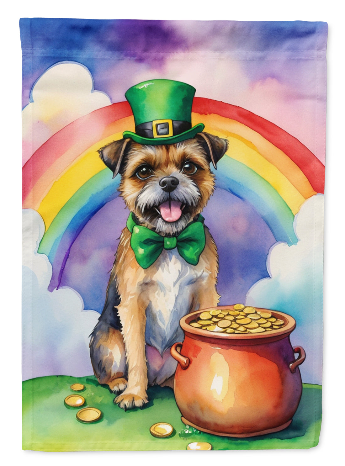 House Flag featuring breed specific Border Terrier artwork. Celebrate St Patrick's Day with this St Patrick's Day Large Flag. Presenting our Heavy Duty Polyester House Size Decorative Sleeve Pole Flag, a vibrant addition to enhance the aesthetic appeal of your home. This large decorative flag, measuring approximately 28 x 40 inches, offers ample coverage and visibility. Each flag is meticulously sewn and made individually, ensuring a unique piece that may slightly vary in size. It's a sleeve pole flag, designed to fit a standard decorative flag pole effortlessly. Please note that the flag pole and bracket are not included and should be purchased separately. What sets our flag apart is its dual-sided print. The design is mirrored on both sides of the fabric, allowing for uniform visibility regardless of the angle. Printed in full color, our flag showcases vibrant hues that truly stand out. To ensure lasting vibrancy and durability, the dyes are heat-set into the fabric. This ensures your flag remains bright and captivating through various weather conditions. Elevate the look of your home with our Heavy Duty Polyester House Size Decorative Sleeve Pole Flag!