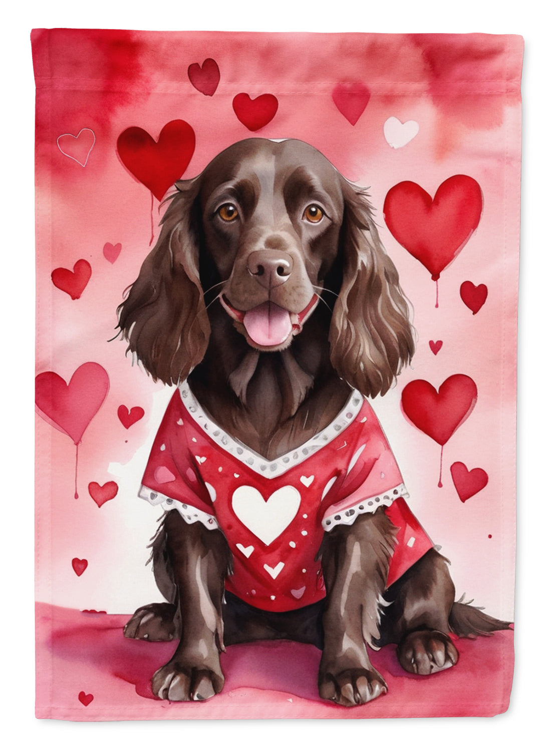 Garden Flag featuring breed specific Boykin Spaniel artwork. Celebrate Valentine's Day with this Valentine's Day Garden Flag. Enhance the beauty of your garden, patio, or yard with Caroline's Treasures Decorative Garden Flag, proudly made in the USA. Crafted from two pieces of thick, double-sided polyester fabric, this 2-ply garden flag is designed to withstand various weather conditions, making it water-resistant and weatherproof. Featuring correctly readable words on both sides, this garden flag offers a delightful visual experience from any angle. With its heavier weight, it stands out among other garden flags, ensuring stability and durability even in wind, rain, and snow. Measuring approximately 11 1/4 inches by 15 1/2 inches, this flag allows you to personalize your outdoor decor. It comes with a 1 1/2-inch sleeve sewn in, allowing easy attachment to any standard garden flag stand or garden size porch hanger (sold separately). Make a statement in your outdoor space with Caroline's Treasures Decorative Garden Flag, a vibrant and high-quality flag that adds color and personality to your surroundings. Proudly made in the USA, it's a symbol of quality craftsmanship and attention to detail.