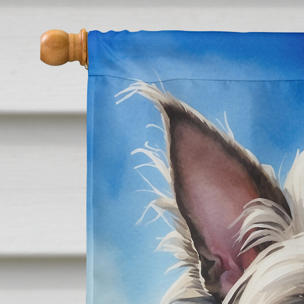 House Flag featuring breed specific Chinese Crested artwork. Presenting our Heavy Duty Polyester House Size Decorative Sleeve Pole Flag, a vibrant addition to enhance the aesthetic appeal of your home. This large decorative flag, measuring approximately 28 x 40 inches, offers ample coverage and visibility. Each flag is meticulously sewn and made individually, ensuring a unique piece that may slightly vary in size. It's a sleeve pole flag, designed to fit a standard decorative flag pole effortlessly. Please note that the flag pole and bracket are not included and should be purchased separately. What sets our flag apart is its dual-sided print. The design is mirrored on both sides of the fabric, allowing for uniform visibility regardless of the angle. Printed in full color, our flag showcases vibrant hues that truly stand out. To ensure lasting vibrancy and durability, the dyes are heat-set into the fabric. This ensures your flag remains bright and captivating through various weather conditions. Elevate the look of your home with our Heavy Duty Polyester House Size Decorative Sleeve Pole Flag!