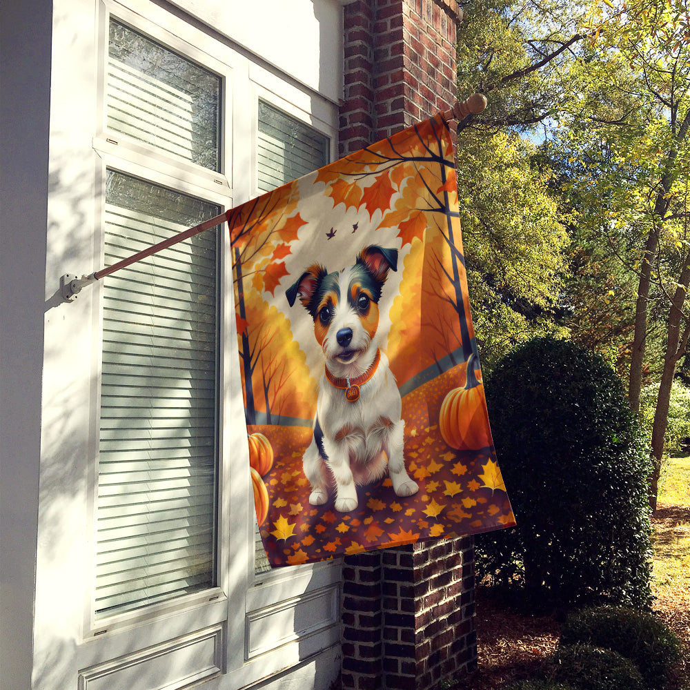 House Flag featuring breed specific Jack Russell Terrier artwork. Presenting our Heavy Duty Polyester House Size Decorative Sleeve Pole Flag, a vibrant addition to enhance the aesthetic appeal of your home. This large decorative flag, measuring approximately 28 x 40 inches, offers ample coverage and visibility. Each flag is meticulously sewn and made individually, ensuring a unique piece that may slightly vary in size. It's a sleeve pole flag, designed to fit a standard decorative flag pole effortlessly. Please note that the flag pole and bracket are not included and should be purchased separately. What sets our flag apart is its dual-sided print. The design is mirrored on both sides of the fabric, allowing for uniform visibility regardless of the angle. Printed in full color, our flag showcases vibrant hues that truly stand out. To ensure lasting vibrancy and durability, the dyes are heat-set into the fabric. This ensures your flag remains bright and captivating through various weather conditions. Elevate the look of your home with our Heavy Duty Polyester House Size Decorative Sleeve Pole Flag!