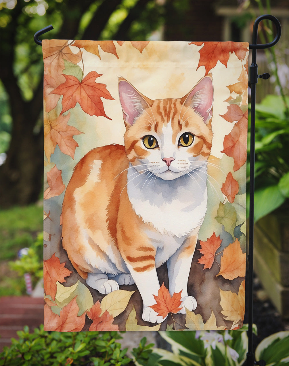 Garden Flag featuring breed specific Japanese Bobtail artwork. Enhance the beauty of your garden, patio, or yard with Caroline's Treasures Decorative Garden Flag, proudly made in the USA. Crafted from two pieces of thick, double-sided polyester fabric, this 2-ply garden flag is designed to withstand various weather conditions, making it water-resistant and weatherproof. Featuring correctly readable words on both sides, this garden flag offers a delightful visual experience from any angle. With its heavier weight, it stands out among other garden flags, ensuring stability and durability even in wind, rain, and snow. Measuring approximately 11 1/4 inches by 15 1/2 inches, this flag allows you to personalize your outdoor decor. It comes with a 1 1/2-inch sleeve sewn in, allowing easy attachment to any standard garden flag stand or garden size porch hanger (sold separately). Make a statement in your outdoor space with Caroline's Treasures Decorative Garden Flag, a vibrant and high-quality flag that adds color and personality to your surroundings. Proudly made in the USA, it's a symbol of quality craftsmanship and attention to detail.