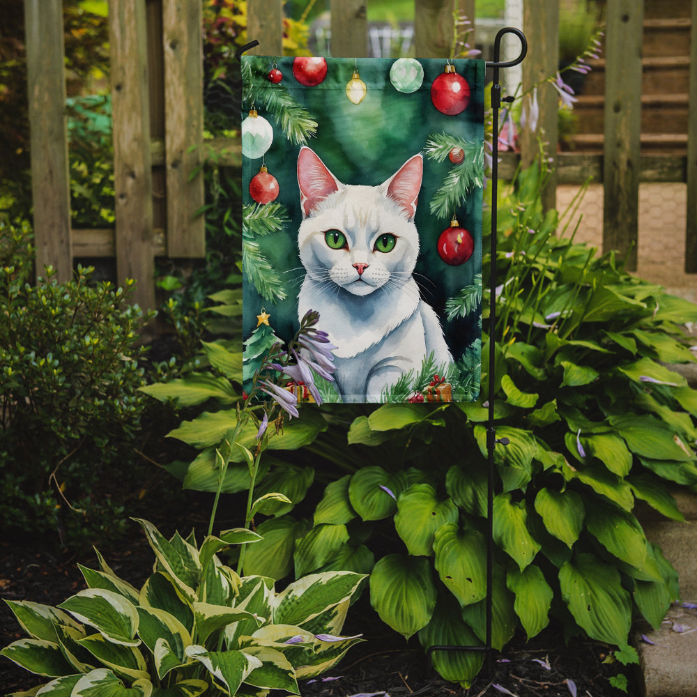 Garden Flag featuring breed specific Khao Manee artwork. Celebrate Christmas with this Christmas Garden Flag. Enhance the beauty of your garden, patio, or yard with Caroline's Treasures Decorative Garden Flag, proudly made in the USA. Crafted from two pieces of thick, double-sided polyester fabric, this 2-ply garden flag is designed to withstand various weather conditions, making it water-resistant and weatherproof. Featuring correctly readable words on both sides, this garden flag offers a delightful visual experience from any angle. With its heavier weight, it stands out among other garden flags, ensuring stability and durability even in wind, rain, and snow. Measuring approximately 11 1/4 inches by 15 1/2 inches, this flag allows you to personalize your outdoor decor. It comes with a 1 1/2-inch sleeve sewn in, allowing easy attachment to any standard garden flag stand or garden size porch hanger (sold separately). Make a statement in your outdoor space with Caroline's Treasures Decorative Garden Flag, a vibrant and high-quality flag that adds color and personality to your surroundings. Proudly made in the USA, it's a symbol of quality craftsmanship and attention to detail.