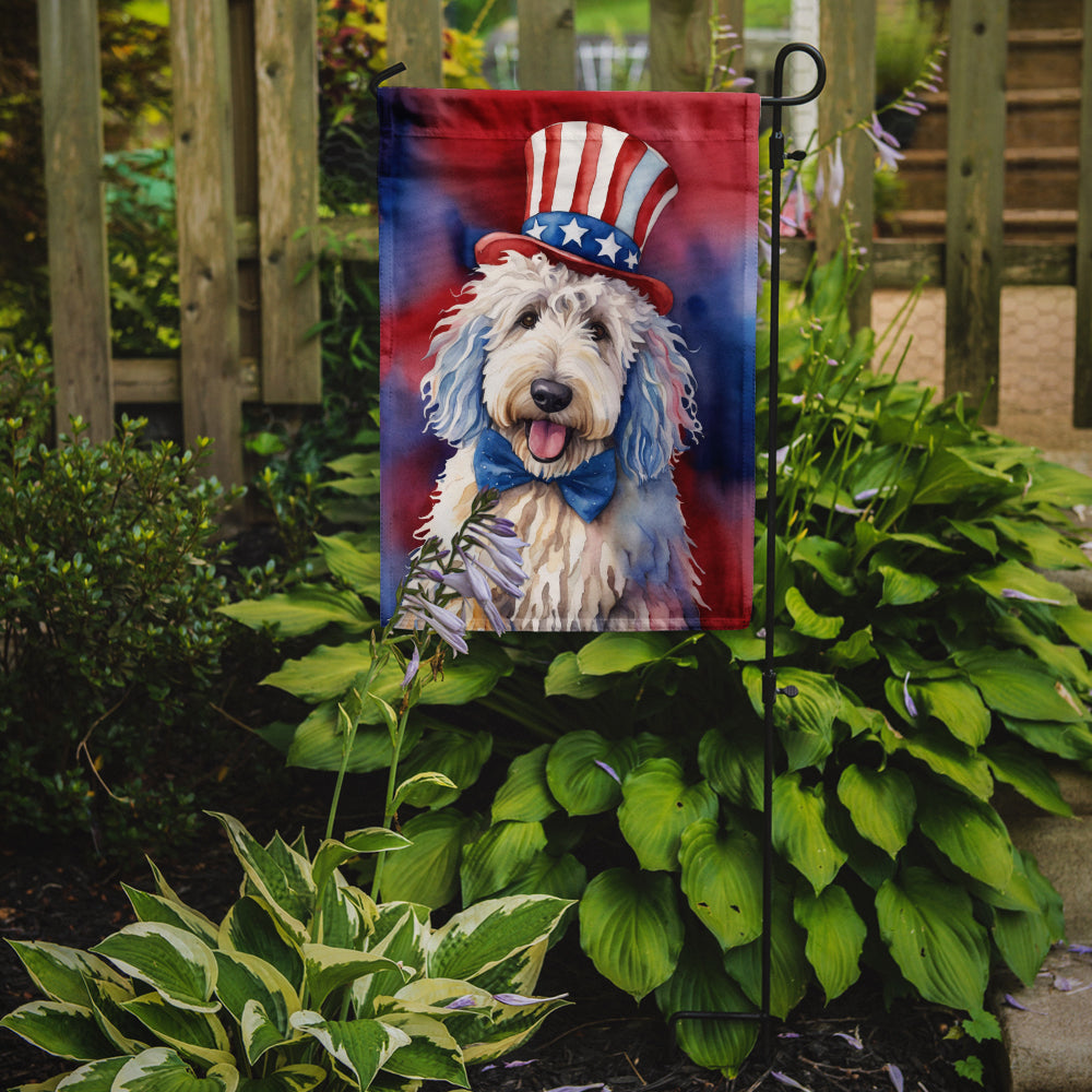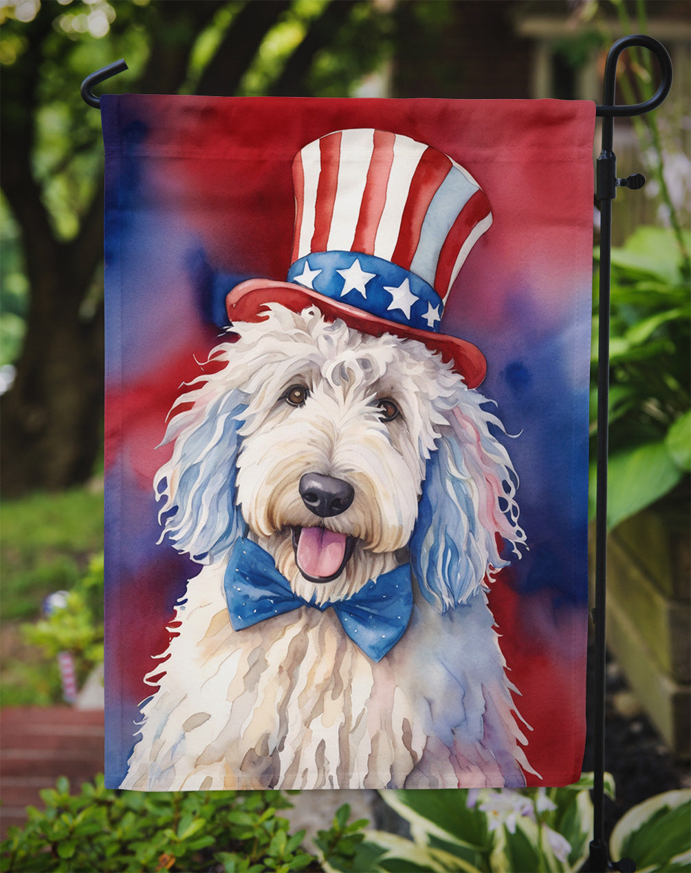 Garden Flag featuring breed specific Komondor artwork. Enhance the beauty of your garden, patio, or yard with Caroline's Treasures Decorative Garden Flag, proudly made in the USA. Crafted from two pieces of thick, double-sided polyester fabric, this 2-ply garden flag is designed to withstand various weather conditions, making it water-resistant and weatherproof. Featuring correctly readable words on both sides, this garden flag offers a delightful visual experience from any angle. With its heavier weight, it stands out among other garden flags, ensuring stability and durability even in wind, rain, and snow. Measuring approximately 11 1/4 inches by 15 1/2 inches, this flag allows you to personalize your outdoor decor. It comes with a 1 1/2-inch sleeve sewn in, allowing easy attachment to any standard garden flag stand or garden size porch hanger (sold separately). Make a statement in your outdoor space with Caroline's Treasures Decorative Garden Flag, a vibrant and high-quality flag that adds color and personality to your surroundings. Proudly made in the USA, it's a symbol of quality craftsmanship and attention to detail.