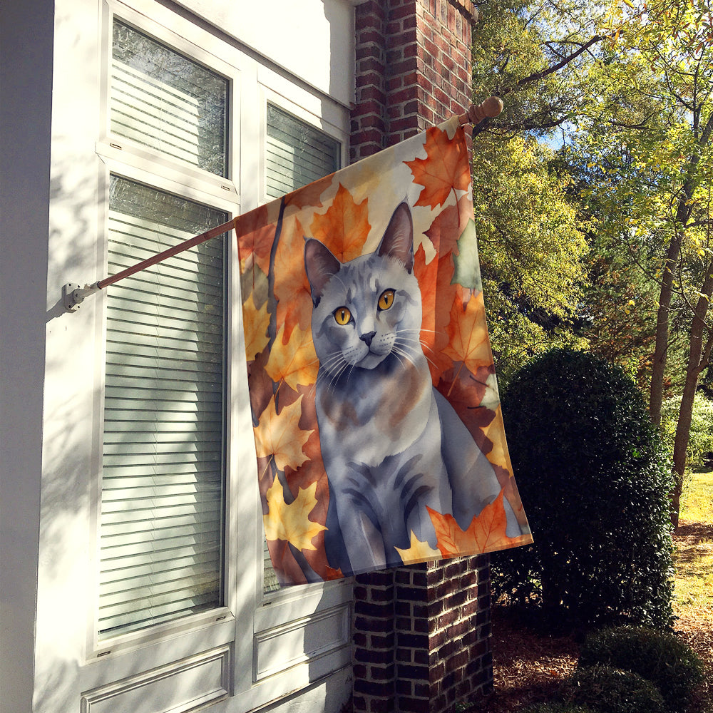 House Flag featuring breed specific Korat artwork. Presenting our Heavy Duty Polyester House Size Decorative Sleeve Pole Flag, a vibrant addition to enhance the aesthetic appeal of your home. This large decorative flag, measuring approximately 28 x 40 inches, offers ample coverage and visibility. Each flag is meticulously sewn and made individually, ensuring a unique piece that may slightly vary in size. It's a sleeve pole flag, designed to fit a standard decorative flag pole effortlessly. Please note that the flag pole and bracket are not included and should be purchased separately. What sets our flag apart is its dual-sided print. The design is mirrored on both sides of the fabric, allowing for uniform visibility regardless of the angle. Printed in full color, our flag showcases vibrant hues that truly stand out. To ensure lasting vibrancy and durability, the dyes are heat-set into the fabric. This ensures your flag remains bright and captivating through various weather conditions. Elevate the look of your home with our Heavy Duty Polyester House Size Decorative Sleeve Pole Flag!