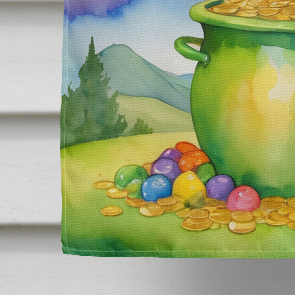 House Flag featuring breed specific Labrador Retriever artwork. Celebrate St Patrick's Day with this St Patrick's Day Large Flag. Presenting our Heavy Duty Polyester House Size Decorative Sleeve Pole Flag, a vibrant addition to enhance the aesthetic appeal of your home. This large decorative flag, measuring approximately 28 x 40 inches, offers ample coverage and visibility. Each flag is meticulously sewn and made individually, ensuring a unique piece that may slightly vary in size. It's a sleeve pole flag, designed to fit a standard decorative flag pole effortlessly. Please note that the flag pole and bracket are not included and should be purchased separately. What sets our flag apart is its dual-sided print. The design is mirrored on both sides of the fabric, allowing for uniform visibility regardless of the angle. Printed in full color, our flag showcases vibrant hues that truly stand out. To ensure lasting vibrancy and durability, the dyes are heat-set into the fabric. This ensures your flag remains bright and captivating through various weather conditions. Elevate the look of your home with our Heavy Duty Polyester House Size Decorative Sleeve Pole Flag!