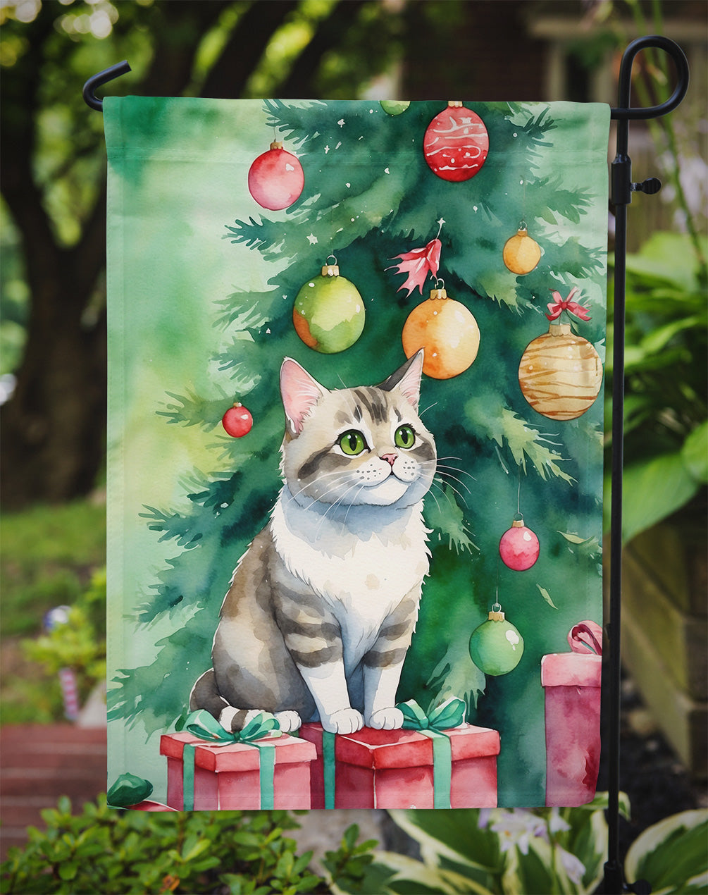 Li Hua Cat By the Christmas Tree Garden Flag
