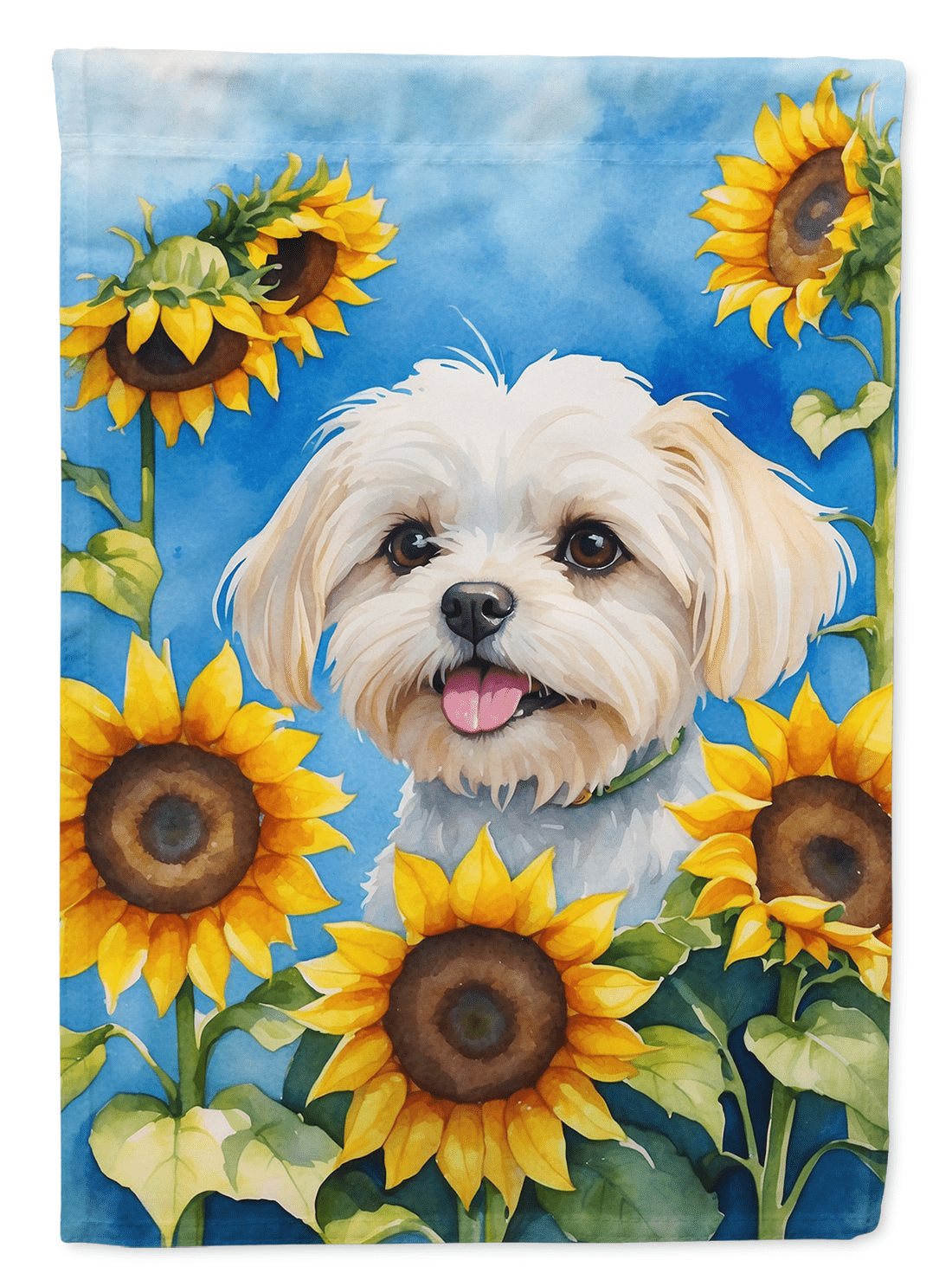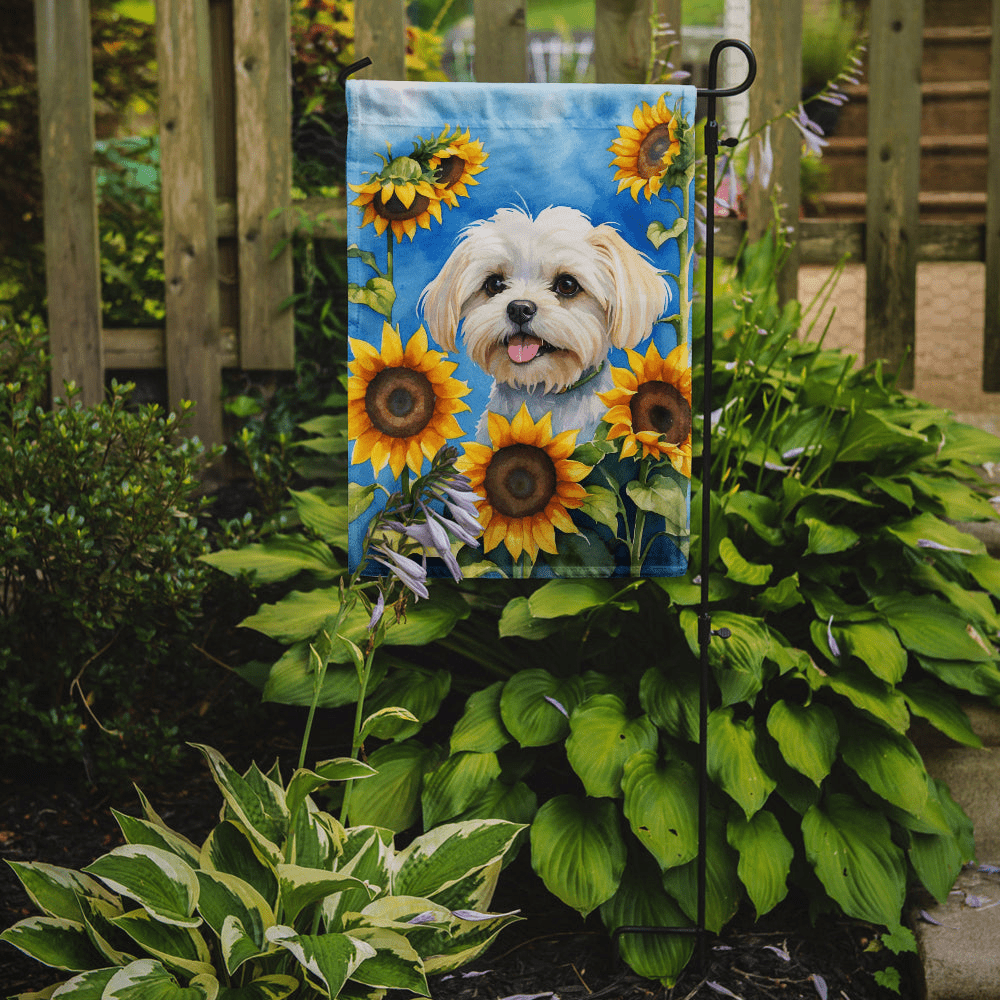 Maltese in Sunflowers Garden Flag