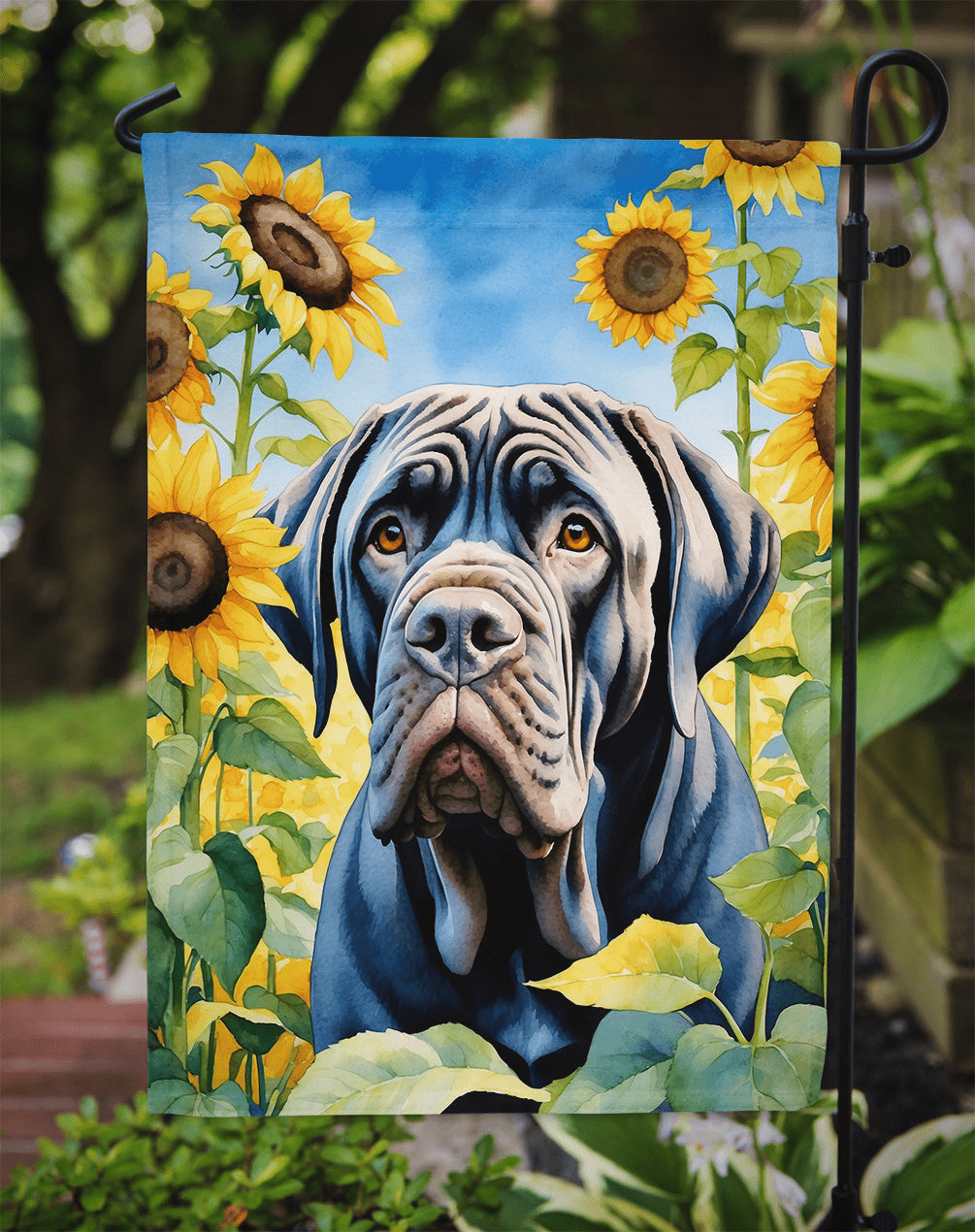 Garden Flag featuring breed specific Neapolitan Mastiff artwork. Enhance the beauty of your garden, patio, or yard with Caroline's Treasures Decorative Garden Flag, proudly made in the USA. Crafted from two pieces of thick, double-sided polyester fabric, this 2-ply garden flag is designed to withstand various weather conditions, making it water-resistant and weatherproof. Featuring correctly readable words on both sides, this garden flag offers a delightful visual experience from any angle. With its heavier weight, it stands out among other garden flags, ensuring stability and durability even in wind, rain, and snow. Measuring approximately 11 1/4 inches by 15 1/2 inches, this flag allows you to personalize your outdoor decor. It comes with a 1 1/2-inch sleeve sewn in, allowing easy attachment to any standard garden flag stand or garden size porch hanger (sold separately). Make a statement in your outdoor space with Caroline's Treasures Decorative Garden Flag, a vibrant and high-quality flag that adds color and personality to your surroundings. Proudly made in the USA, it's a symbol of quality craftsmanship and attention to detail.