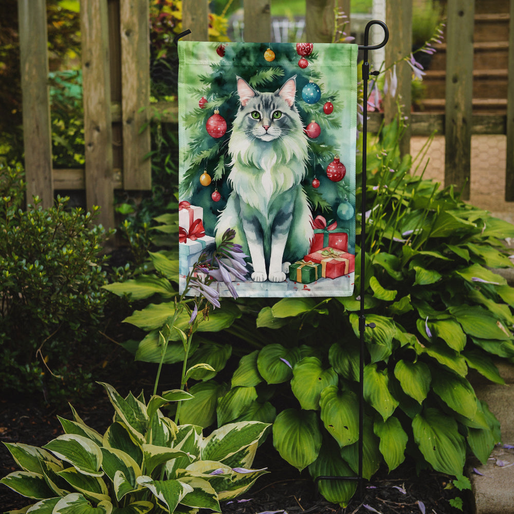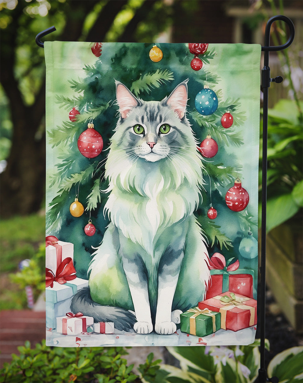 Oriental Longhair Cat By the Christmas Tree Garden Flag