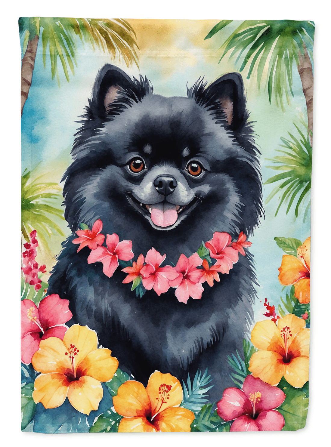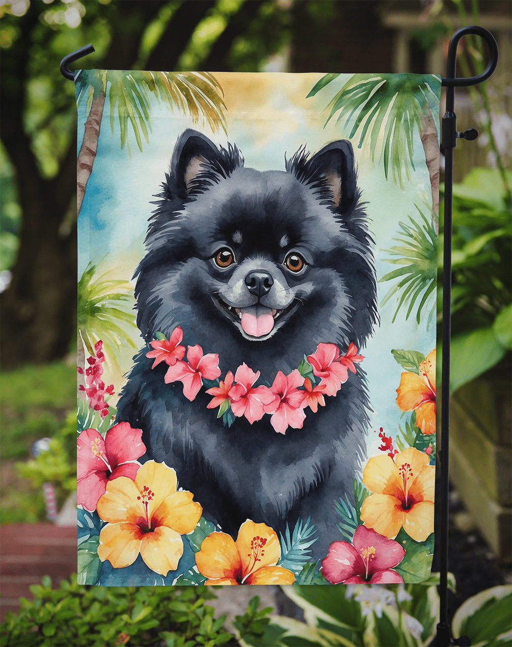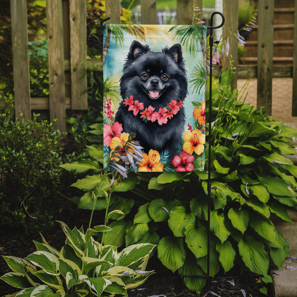 Pomeranian Luau Garden Flag
