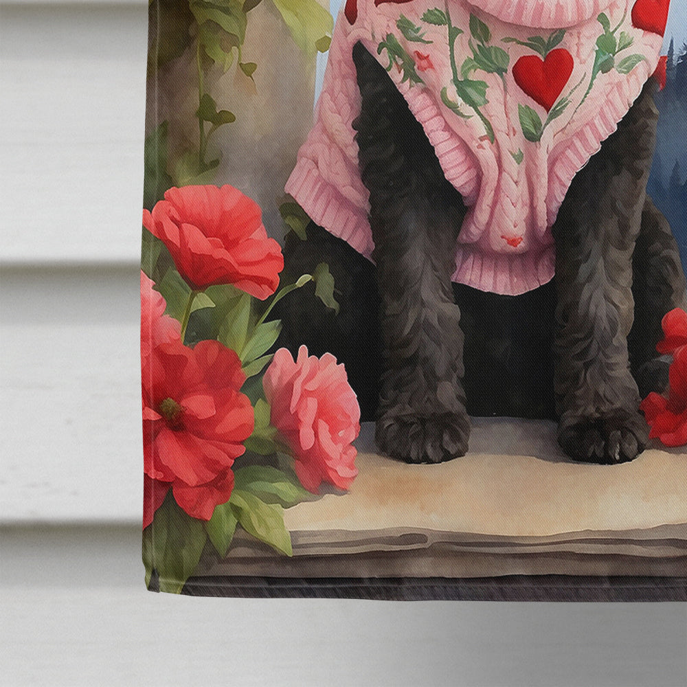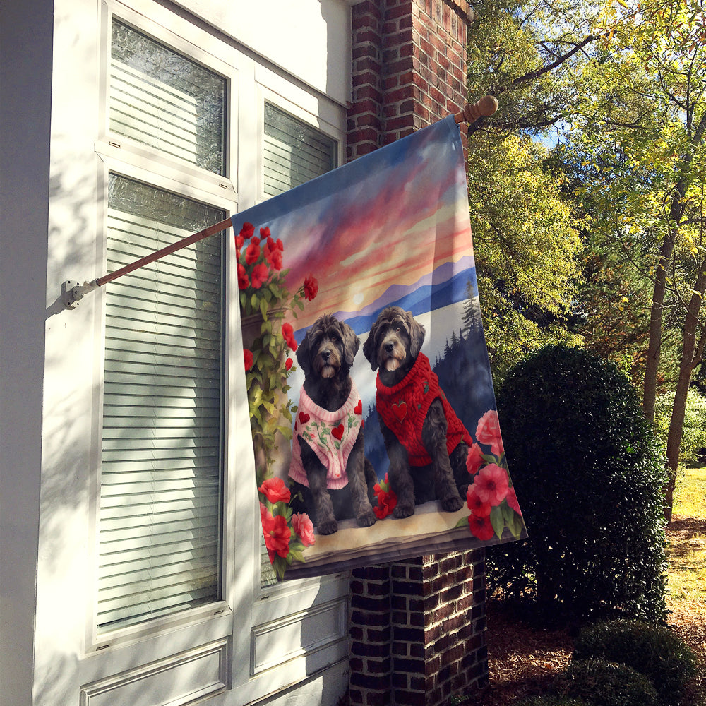 House Flag featuring breed specific Portuguese Water Dog artwork. Celebrate Valentine's Day with this Valentine's Day Large Flag. Presenting our Heavy Duty Polyester House Size Decorative Sleeve Pole Flag, a vibrant addition to enhance the aesthetic appeal of your home. This large decorative flag, measuring approximately 28 x 40 inches, offers ample coverage and visibility. Each flag is meticulously sewn and made individually, ensuring a unique piece that may slightly vary in size. It's a sleeve pole flag, designed to fit a standard decorative flag pole effortlessly. Please note that the flag pole and bracket are not included and should be purchased separately. What sets our flag apart is its dual-sided print. The design is mirrored on both sides of the fabric, allowing for uniform visibility regardless of the angle. Printed in full color, our flag showcases vibrant hues that truly stand out. To ensure lasting vibrancy and durability, the dyes are heat-set into the fabric. This ensures your flag remains bright and captivating through various weather conditions. Elevate the look of your home with our Heavy Duty Polyester House Size Decorative Sleeve Pole Flag!