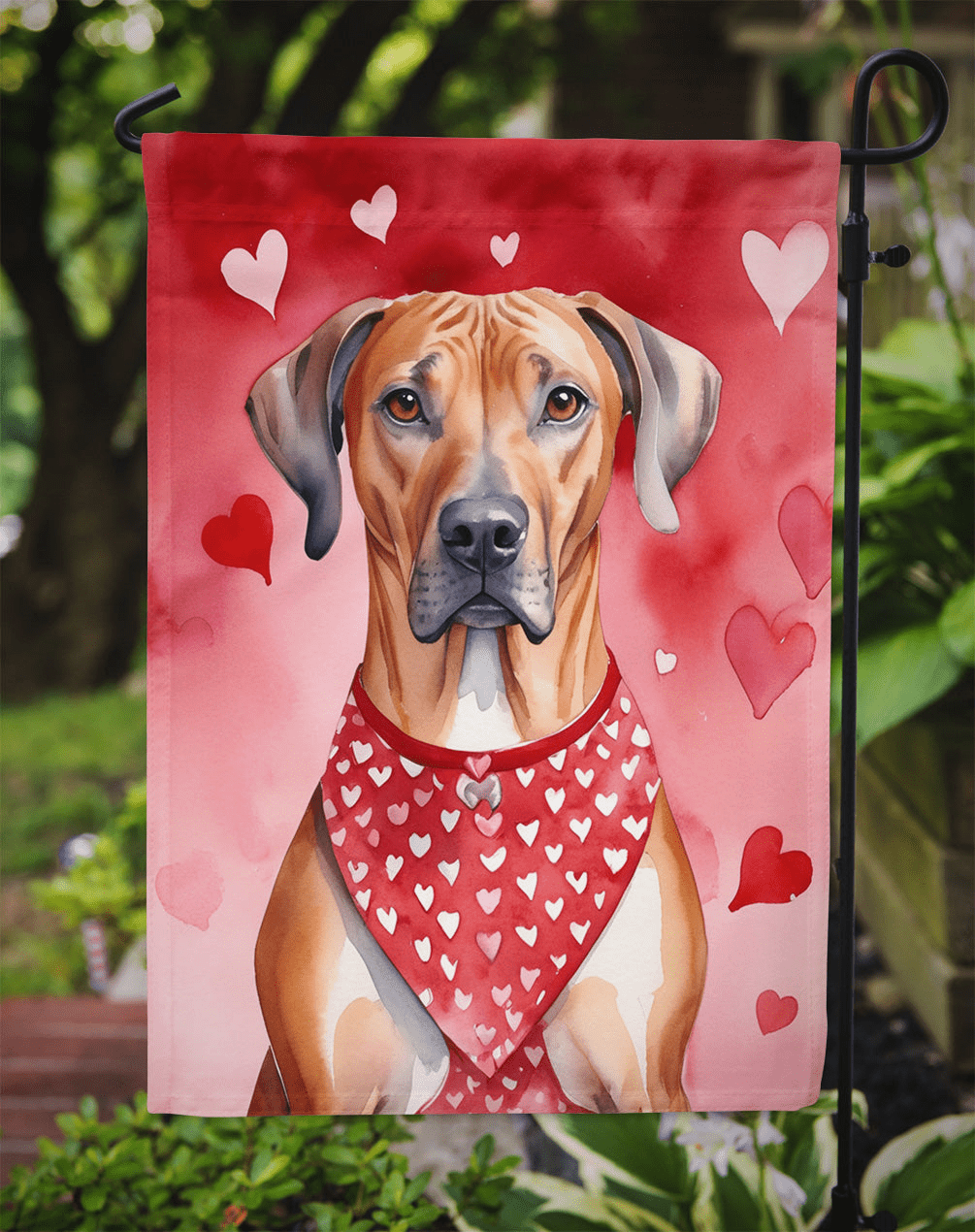 Garden Flag featuring breed specific Rhodesian Ridgeback artwork. Celebrate Valentine's Day with this Valentine's Day Garden Flag. Enhance the beauty of your garden, patio, or yard with Caroline's Treasures Decorative Garden Flag, proudly made in the USA. Crafted from two pieces of thick, double-sided polyester fabric, this 2-ply garden flag is designed to withstand various weather conditions, making it water-resistant and weatherproof. Featuring correctly readable words on both sides, this garden flag offers a delightful visual experience from any angle. With its heavier weight, it stands out among other garden flags, ensuring stability and durability even in wind, rain, and snow. Measuring approximately 11 1/4 inches by 15 1/2 inches, this flag allows you to personalize your outdoor decor. It comes with a 1 1/2-inch sleeve sewn in, allowing easy attachment to any standard garden flag stand or garden size porch hanger (sold separately). Make a statement in your outdoor space with Caroline's Treasures Decorative Garden Flag, a vibrant and high-quality flag that adds color and personality to your surroundings. Proudly made in the USA, it's a symbol of quality craftsmanship and attention to detail.