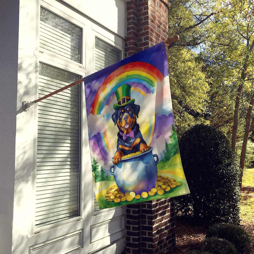 House Flag featuring breed specific Rottweiler artwork. Celebrate St Patrick's Day with this St Patrick's Day Large Flag. Presenting our Heavy Duty Polyester House Size Decorative Sleeve Pole Flag, a vibrant addition to enhance the aesthetic appeal of your home. This large decorative flag, measuring approximately 28 x 40 inches, offers ample coverage and visibility. Each flag is meticulously sewn and made individually, ensuring a unique piece that may slightly vary in size. It's a sleeve pole flag, designed to fit a standard decorative flag pole effortlessly. Please note that the flag pole and bracket are not included and should be purchased separately. What sets our flag apart is its dual-sided print. The design is mirrored on both sides of the fabric, allowing for uniform visibility regardless of the angle. Printed in full color, our flag showcases vibrant hues that truly stand out. To ensure lasting vibrancy and durability, the dyes are heat-set into the fabric. This ensures your flag remains bright and captivating through various weather conditions. Elevate the look of your home with our Heavy Duty Polyester House Size Decorative Sleeve Pole Flag!