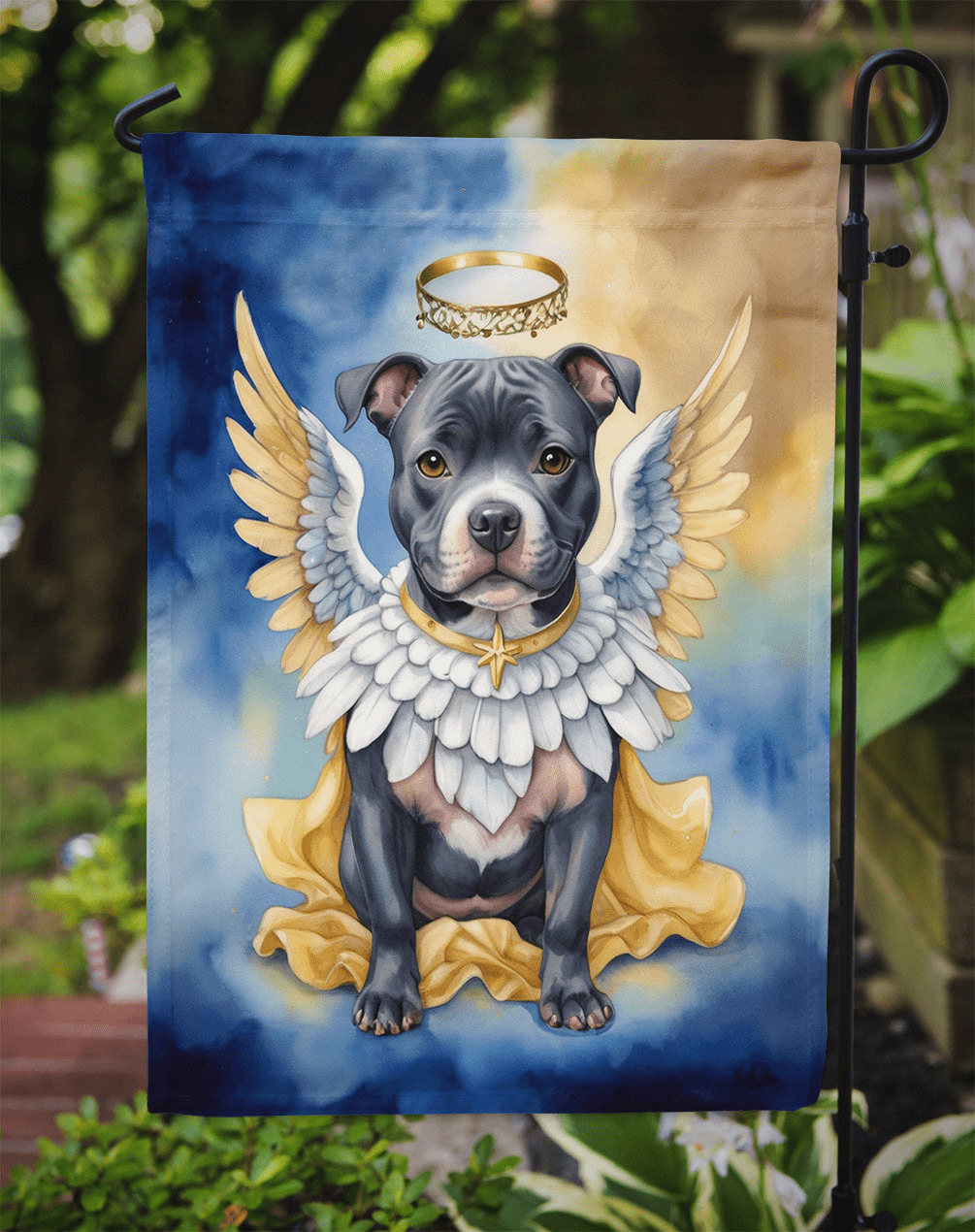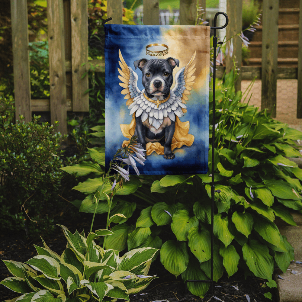 Garden Flag featuring breed specific Staffordshire Bull Terrier artwork. Celebrate Christmas with this Christmas Garden Flag. Enhance the beauty of your garden, patio, or yard with Caroline's Treasures Decorative Garden Flag, proudly made in the USA. Crafted from two pieces of thick, double-sided polyester fabric, this 2-ply garden flag is designed to withstand various weather conditions, making it water-resistant and weatherproof. Featuring correctly readable words on both sides, this garden flag offers a delightful visual experience from any angle. With its heavier weight, it stands out among other garden flags, ensuring stability and durability even in wind, rain, and snow. Measuring approximately 11 1/4 inches by 15 1/2 inches, this flag allows you to personalize your outdoor decor. It comes with a 1 1/2-inch sleeve sewn in, allowing easy attachment to any standard garden flag stand or garden size porch hanger (sold separately). Make a statement in your outdoor space with Caroline's Treasures Decorative Garden Flag, a vibrant and high-quality flag that adds color and personality to your surroundings. Proudly made in the USA, it's a symbol of quality craftsmanship and attention to detail.