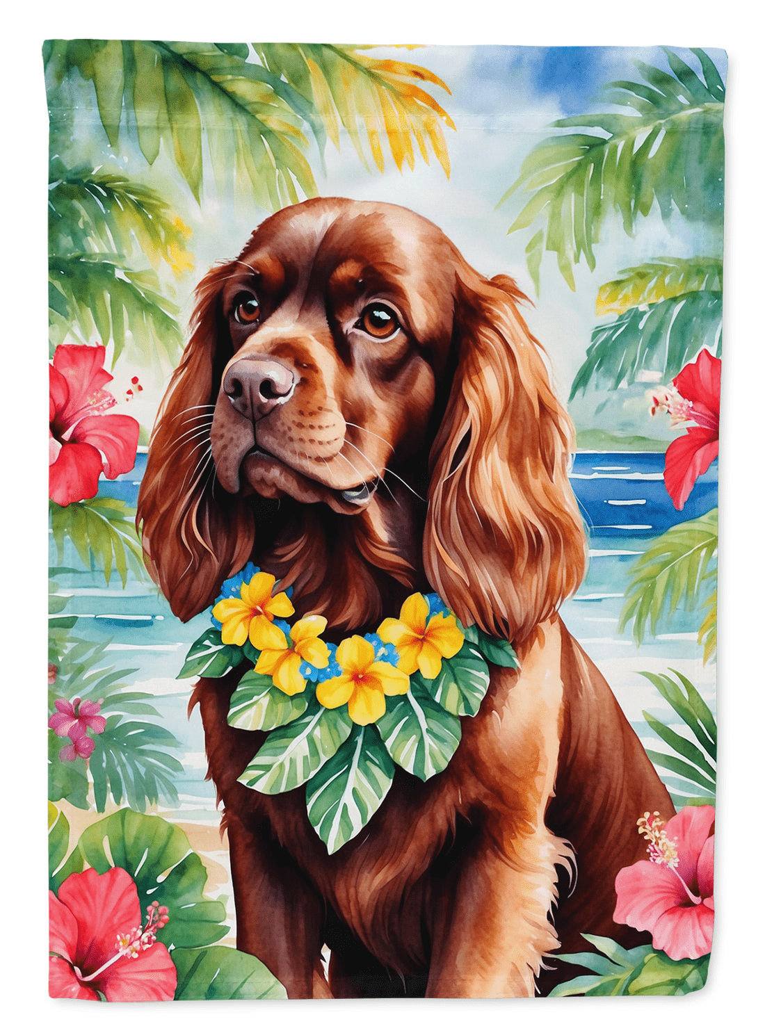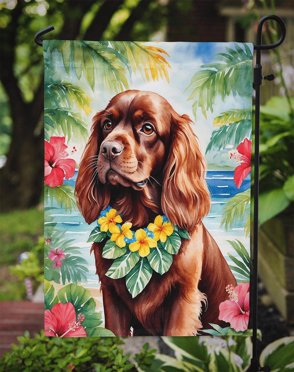 Garden Flag featuring breed specific Sussex Spaniel artwork. Enhance the beauty of your garden, patio, or yard with Caroline's Treasures Decorative Garden Flag, proudly made in the USA. Crafted from two pieces of thick, double-sided polyester fabric, this 2-ply garden flag is designed to withstand various weather conditions, making it water-resistant and weatherproof. Featuring correctly readable words on both sides, this garden flag offers a delightful visual experience from any angle. With its heavier weight, it stands out among other garden flags, ensuring stability and durability even in wind, rain, and snow. Measuring approximately 11 1/4 inches by 15 1/2 inches, this flag allows you to personalize your outdoor decor. It comes with a 1 1/2-inch sleeve sewn in, allowing easy attachment to any standard garden flag stand or garden size porch hanger (sold separately). Make a statement in your outdoor space with Caroline's Treasures Decorative Garden Flag, a vibrant and high-quality flag that adds color and personality to your surroundings. Proudly made in the USA, it's a symbol of quality craftsmanship and attention to detail.