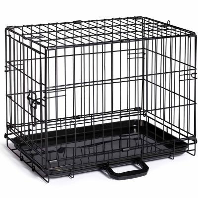 Prevue Pet Products Home On The Go Single Door Dog Crate by Small E430 has been created to provide your pet with the highest level of safety and comfort. Designed to withstand years of use. Our Economy Dog Crate is constructed from heavy gauge mesh for security and stability while the powder coated black finish is non tobyic durable and cleans up easily. Large front door features a heavier framework plus 1 security lock to prevent your pup from getting out. Ebytra deep 1 .5 inch plastic pan with rounded corners prevents leaks contains mess and can be removed separately for convenient cleaning. Lightweight single door crate assembles easily without tools features plastic handles for portability and folds flat when not in use. Whether used for training or traveling our wire crate provides your pet with unobstructed views and better air ventilation than plastic kennels and wont leak or stain like galvanized steel. Our by Small Economy Dog Crate is ideal for pets up to 10 lbs. and 14 inches in height such as Bichons Chihuahuas Pugs Yorkshire Terriers and Mini Dachshunds. Crate measures 19 1 4 Long 12 1 2 Wide and 15 High while open and folds flat to 19 3 4 Long 13 Wide and 3 1 4 High. Constructed from 10 12 gauge mesh with 1 1 4 wire spacing.