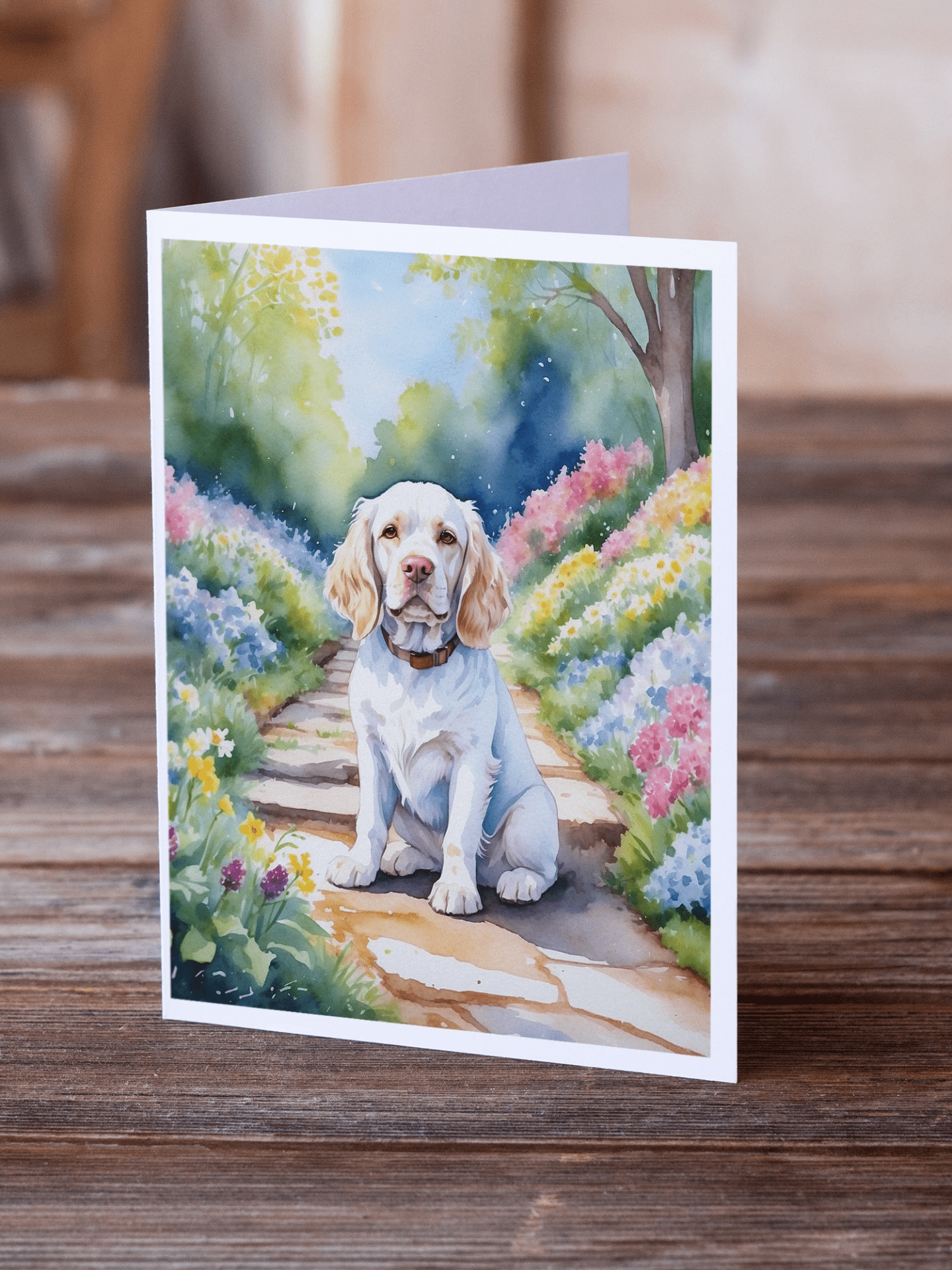 Clumber Spaniel Spring Path Greeting Cards Pack of 8