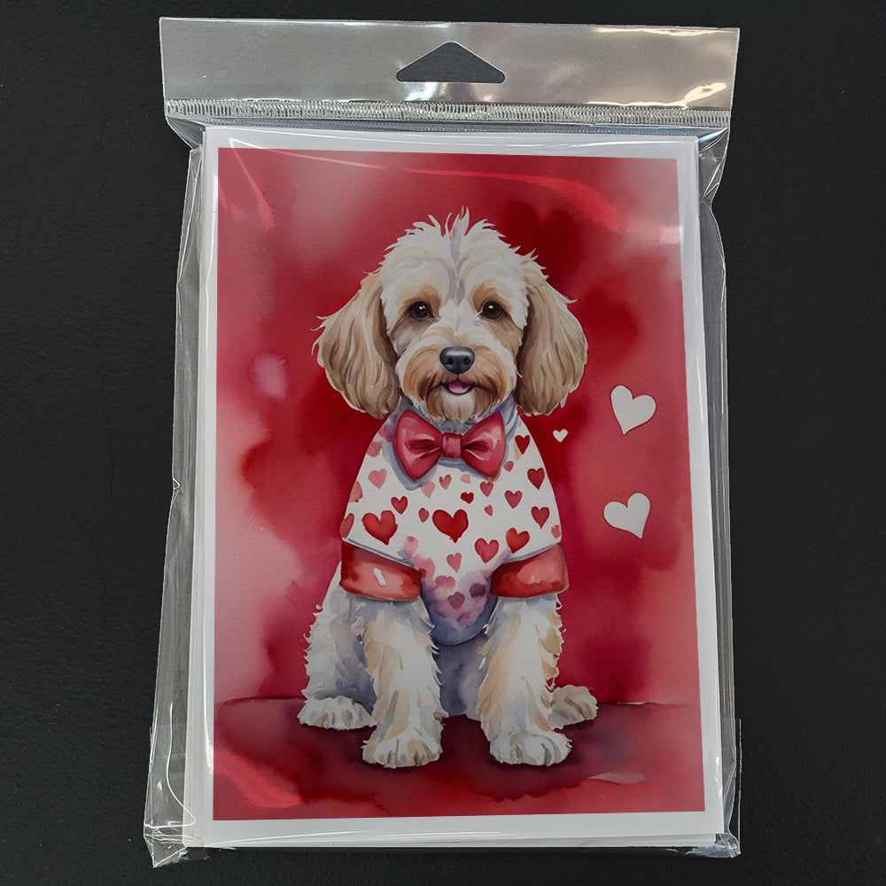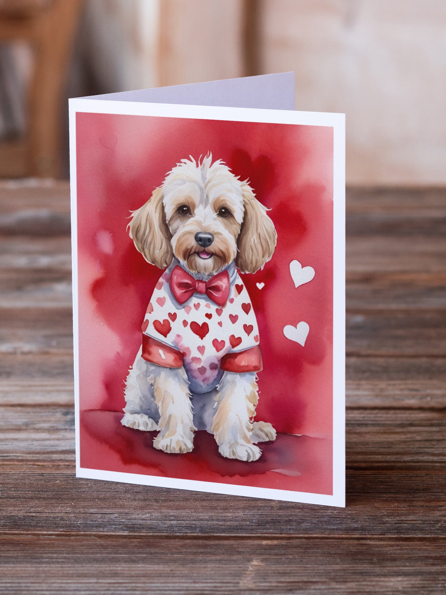 Greeting Cards Pack of 8 featuring breed specific Cockapoo artwork. Celebrate Valentine's Day with this Valentine's Day . Celebrate special moments with Caroline's Treasures Printed Greeting Card Pack. This pack includes eight beautifully folded 5x7 cards, accompanied by eight matching white envelopes. With blank interiors, these cards provide ample space for your personalized messages and heartfelt holiday greetings. Each card features captivating full-color artwork, meticulously printed in our facility on high-quality 80 lb cover stock or 216 GSM. The super smooth finish of the white cards enhances the visual impact of the artwork, creating a truly stunning presentation. Designed by our talented in-house artists or licensed artists, the artwork on these cards showcases their creativity and attention to detail. From vibrant illustrations to captivating designs, each card tells its own unique story. Whether it's for birthdays, anniversaries, holidays, or any special occasion, Caroline's Treasures Greeting Card Pack is the perfect way to convey your heartfelt sentiments. Share joy, love, and warm wishes with these exquisite cards and make every moment unforgettable.