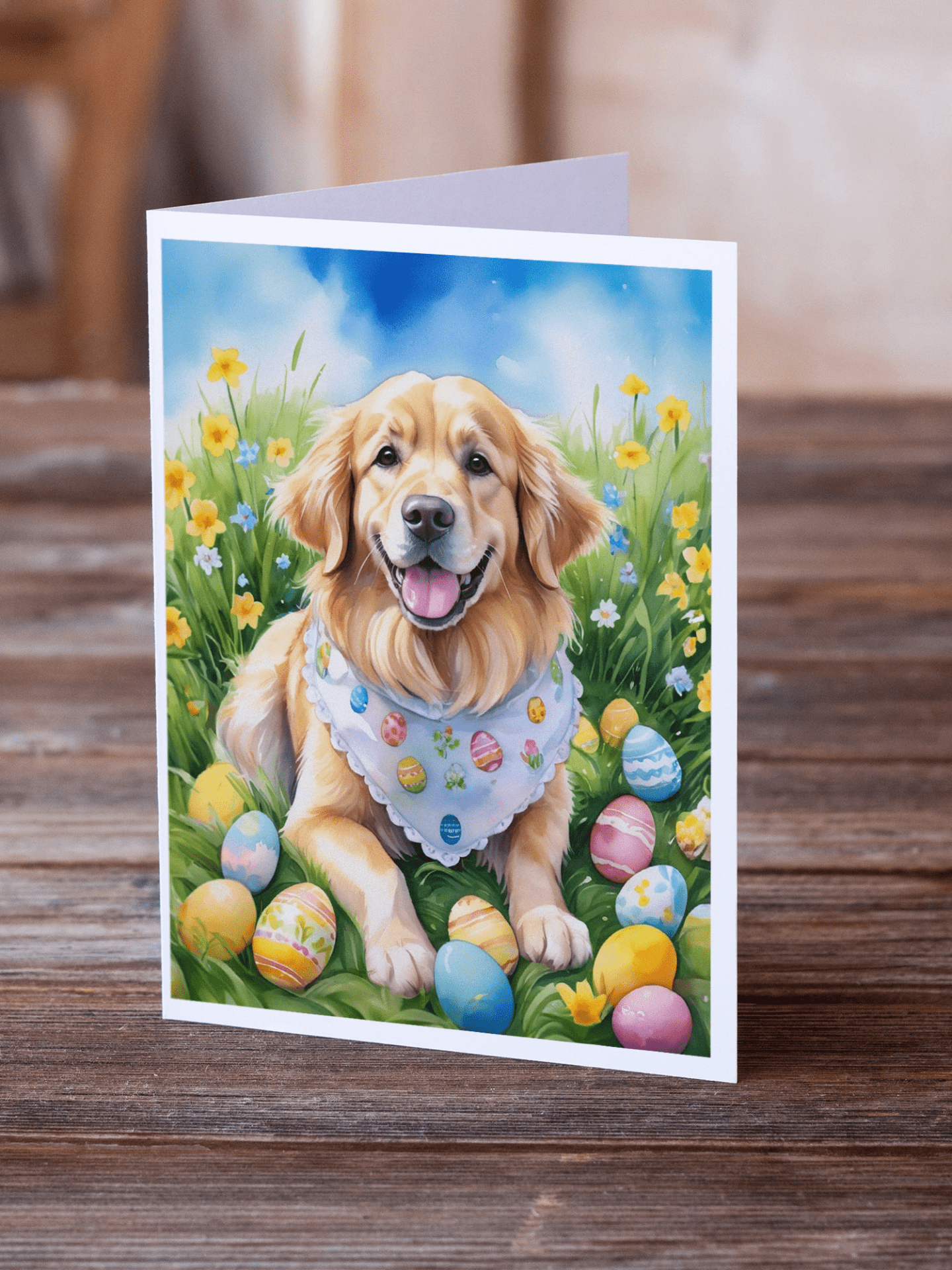 Greeting Cards Pack of 8 featuring breed specific Golden Retriever artwork. Celebrate Easter with this Easter . Celebrate special moments with Caroline's Treasures Printed Greeting Card Pack. This pack includes eight beautifully folded 5x7 cards, accompanied by eight matching white envelopes. With blank interiors, these cards provide ample space for your personalized messages and heartfelt holiday greetings. Each card features captivating full-color artwork, meticulously printed in our facility on high-quality 80 lb cover stock or 216 GSM. The super smooth finish of the white cards enhances the visual impact of the artwork, creating a truly stunning presentation. Designed by our talented in-house artists or licensed artists, the artwork on these cards showcases their creativity and attention to detail. From vibrant illustrations to captivating designs, each card tells its own unique story. Whether it's for birthdays, anniversaries, holidays, or any special occasion, Caroline's Treasures Greeting Card Pack is the perfect way to convey your heartfelt sentiments. Share joy, love, and warm wishes with these exquisite cards and make every moment unforgettable.