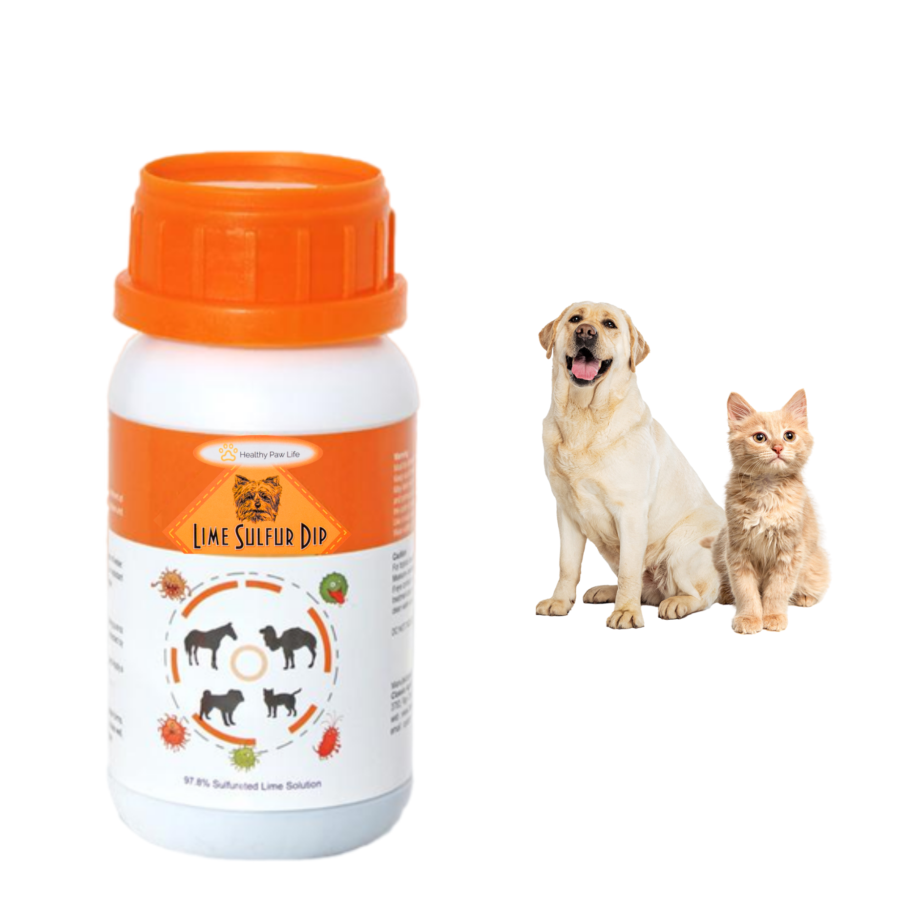 Our Healthy Paw Life's Lime Sulfur Dip offers a safe but powerful relief for your furry pal. Our lime sulfur dip channels the healing powers of earthy ingredients to rid your pets of itchy skin problems. Calcium and sulfur do a great job of fighting non-specific dermatoses.