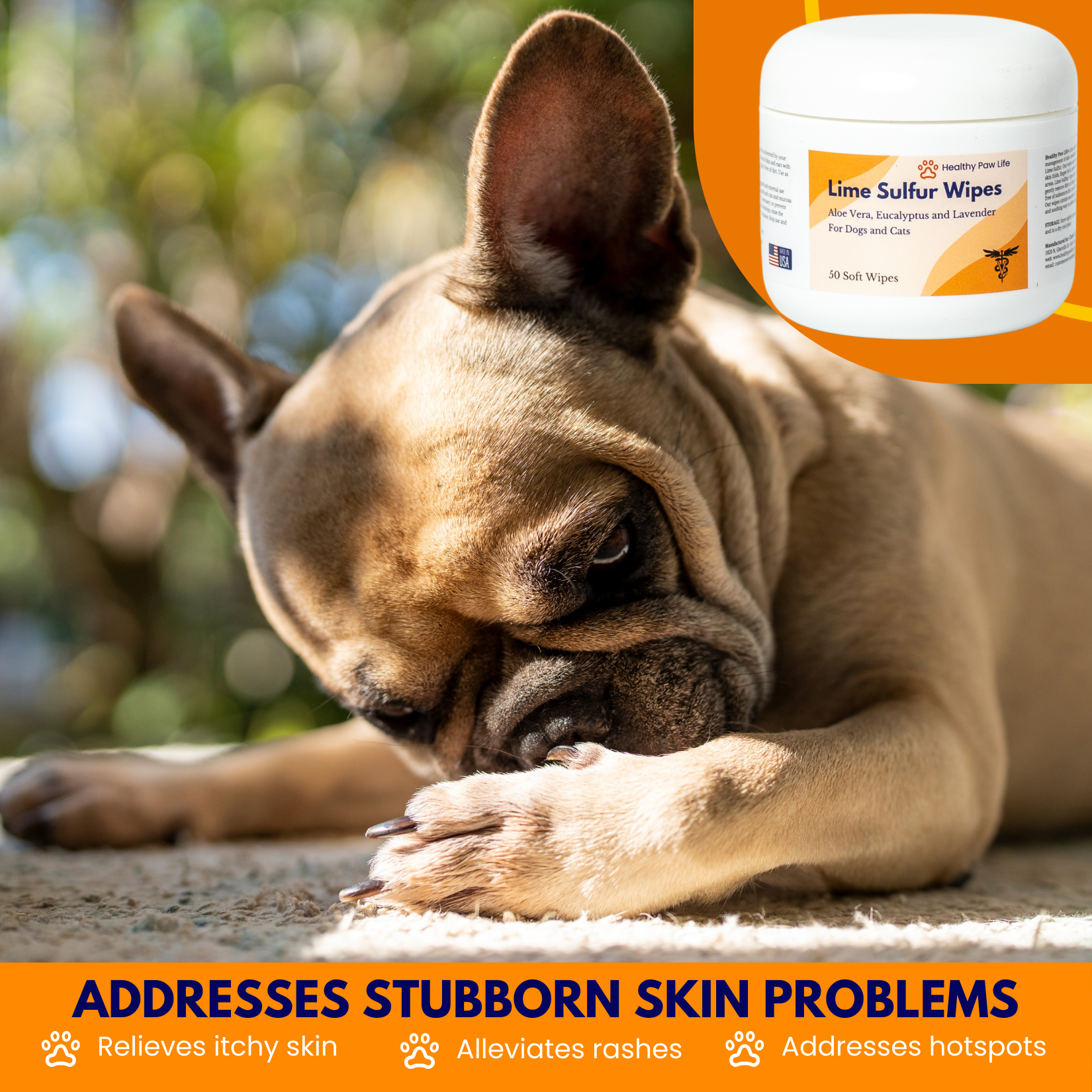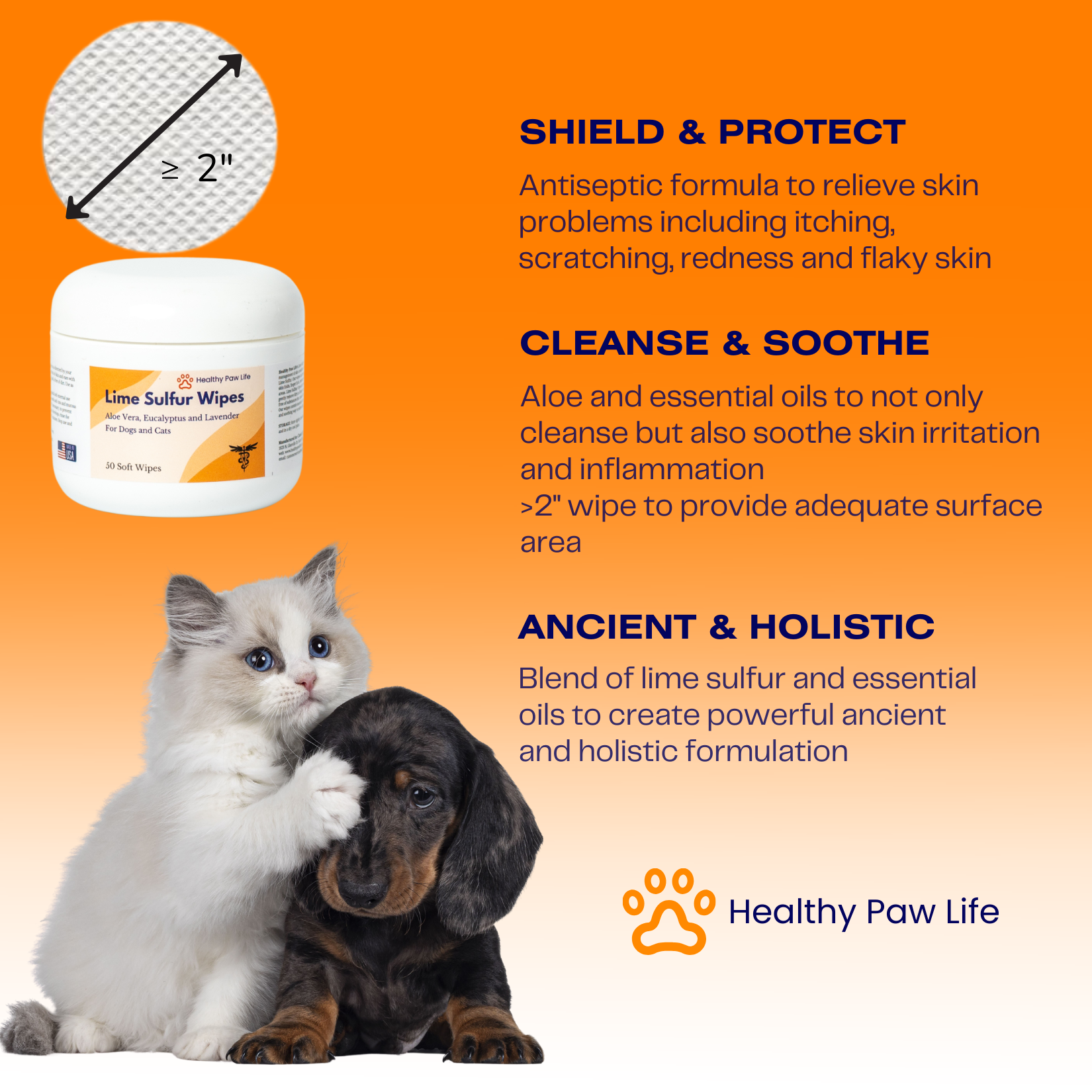 Healthy Paw Life’s Lime Sulfur Wipes - Relief for Itching, Scratching, and Redness - Infused with Lime Sulfur, Aloe & Essential Oils - Skin Care Solution for Pets (50ct, 2" Skin Soothe Wipes)