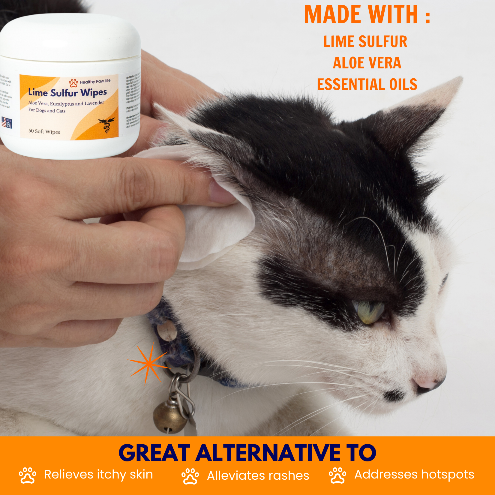 Safe and Gentle Formulation: Harnessing the power of a blend of lime sulfur and essential oils, our wipes offer a powerful ancient and holistic solution for your pet's skin issues.