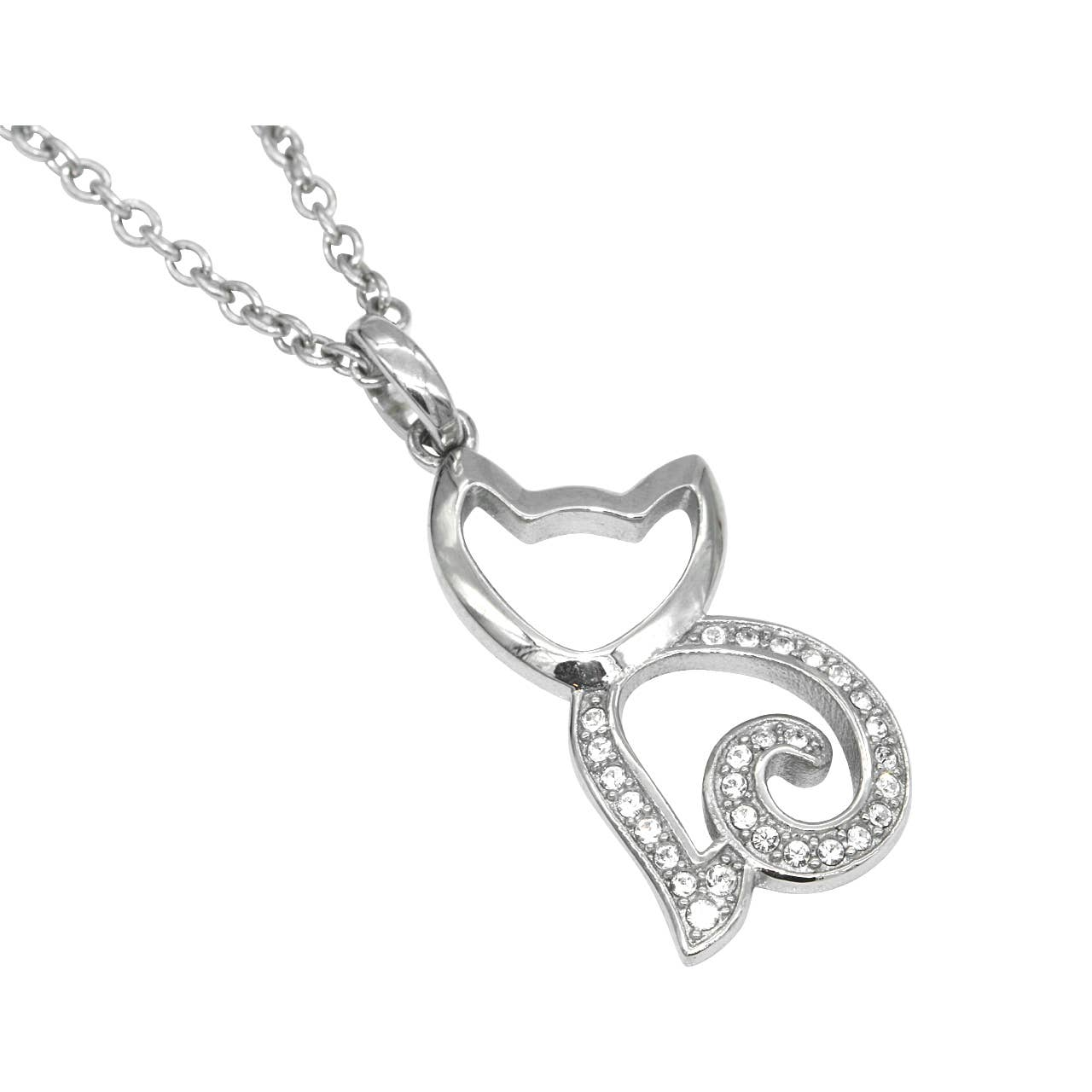 The Purrfect Gleam Cat necklace was made with kitty-cat lovers in mind. Made of stainless steel, the pendant on the Purrfect Gleam Cat necklace shines with 28 pieces of white Swarovski crystals. Complete with a stainless steel link chain, the Purrfect Gleam Cat necklace makes for a cute and cuddly accessory for any cute and casual ensemble.  316L Stainless Steel with 28 white Swarovski crystals Pouch included  Pendant Size: W: 0.55" H: 0.98" Chain Length: 15" - 18" Adjustable