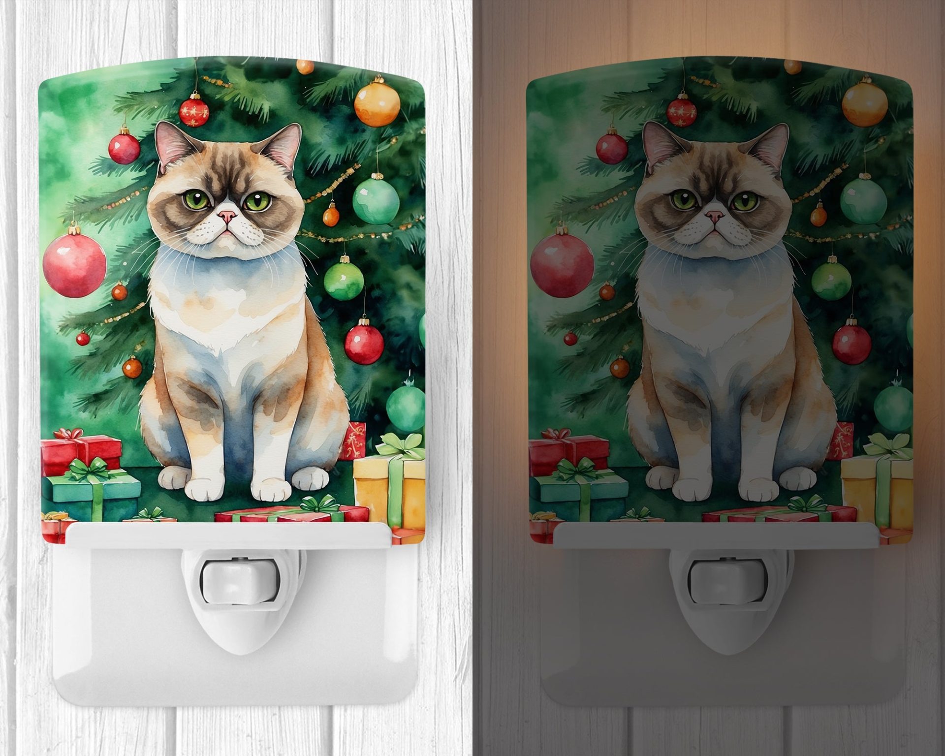 Exotic Shorthair Cat By the Christmas Tree Ceramic Night Light