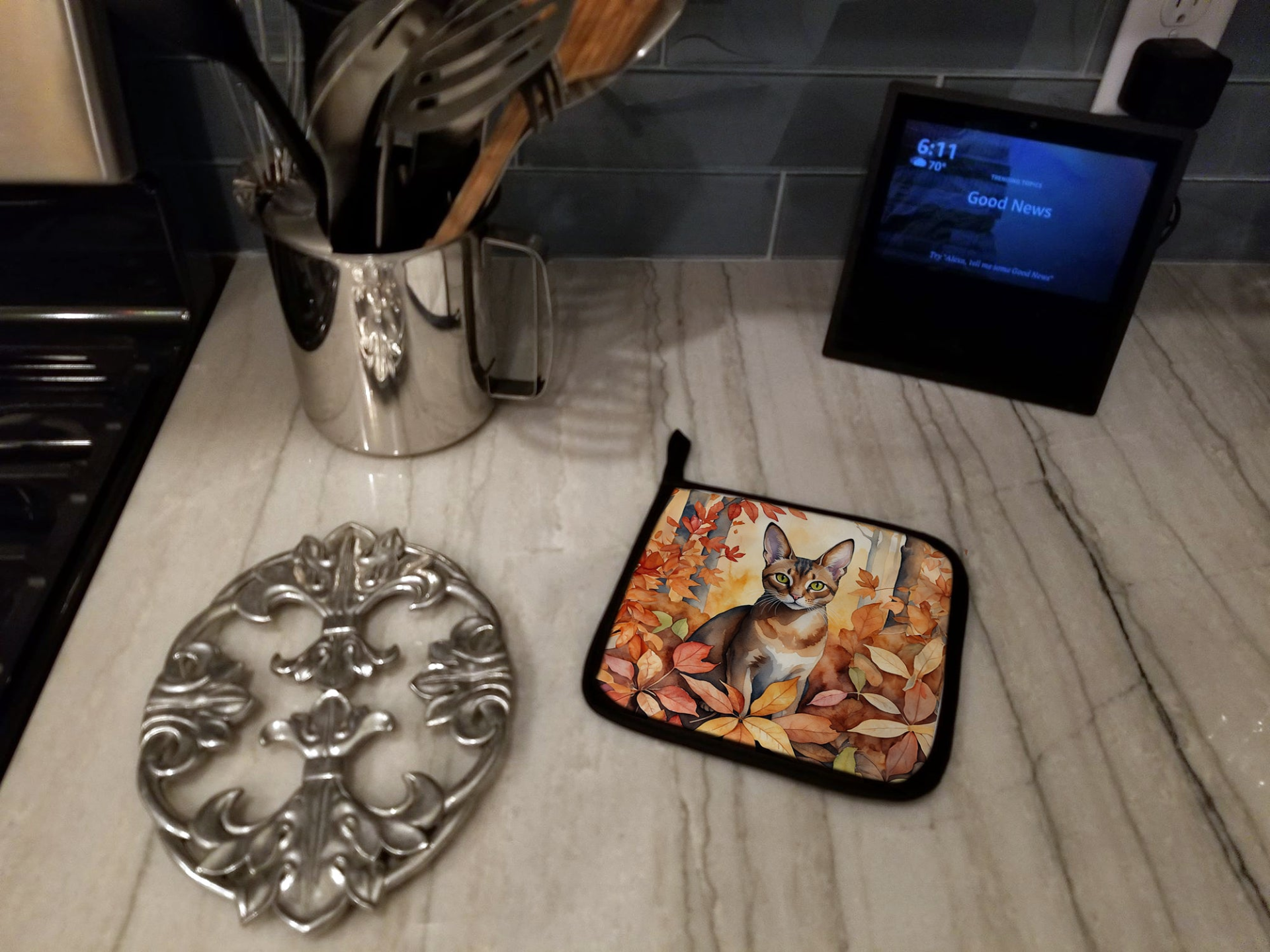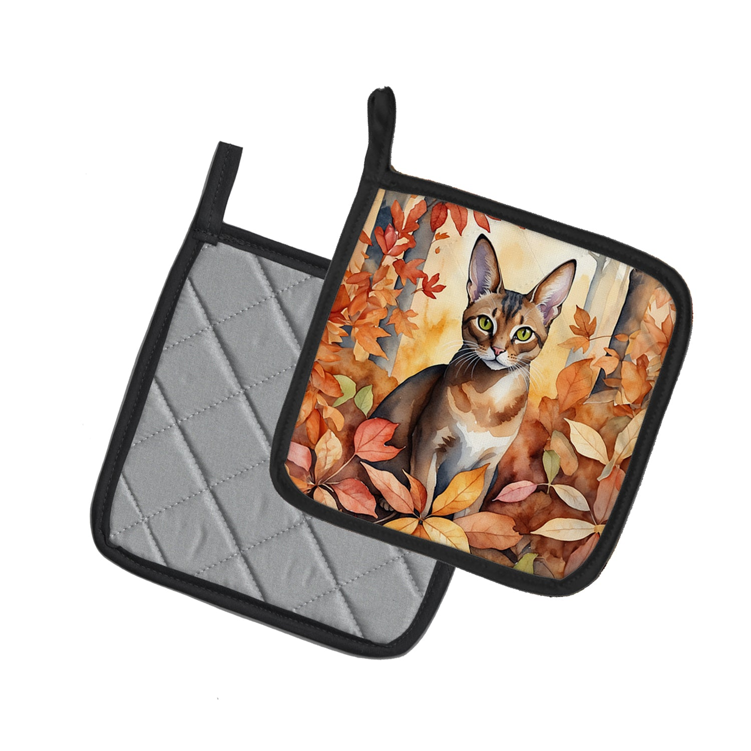 Abyssinian Cat in Fall Leaves Pair of Pot Holders