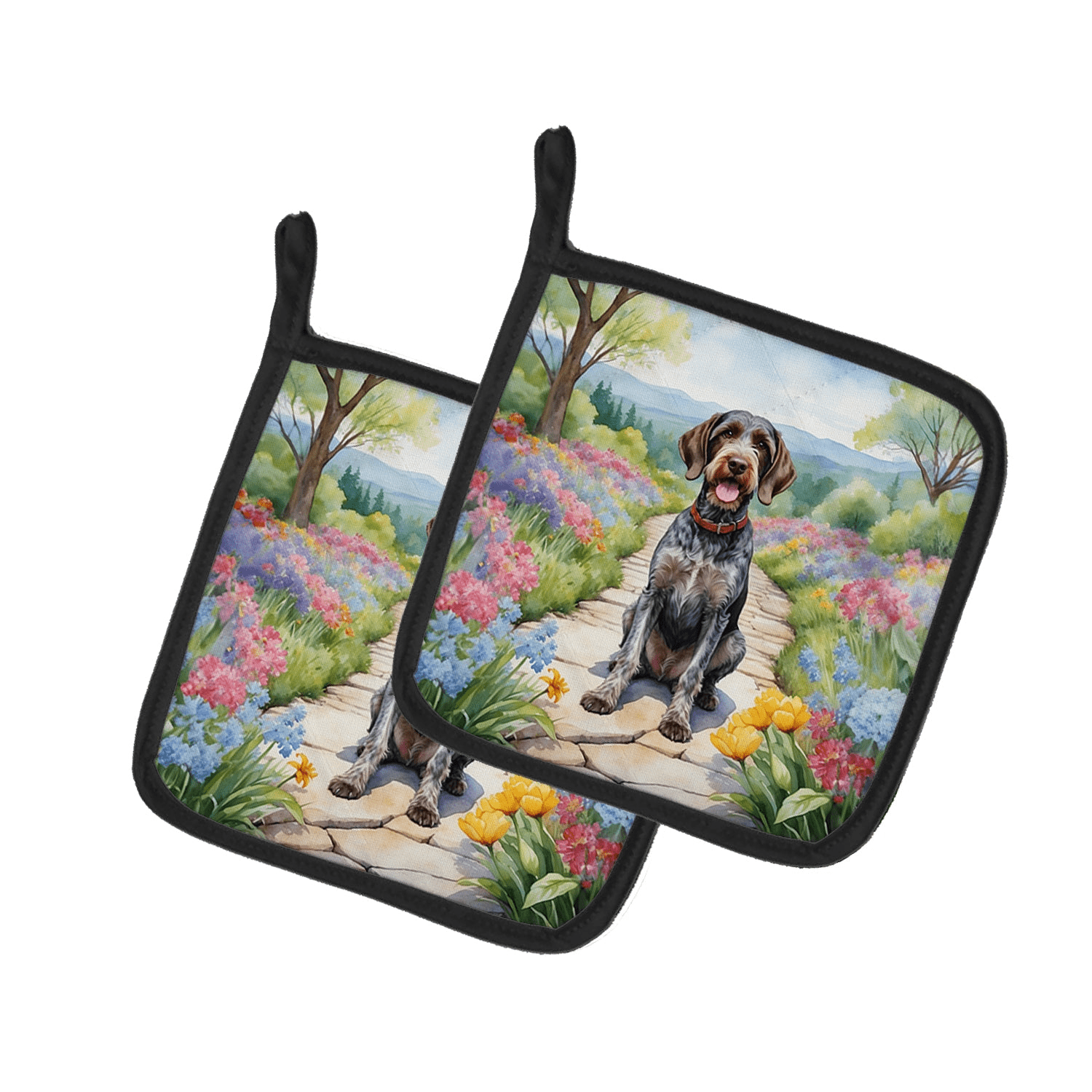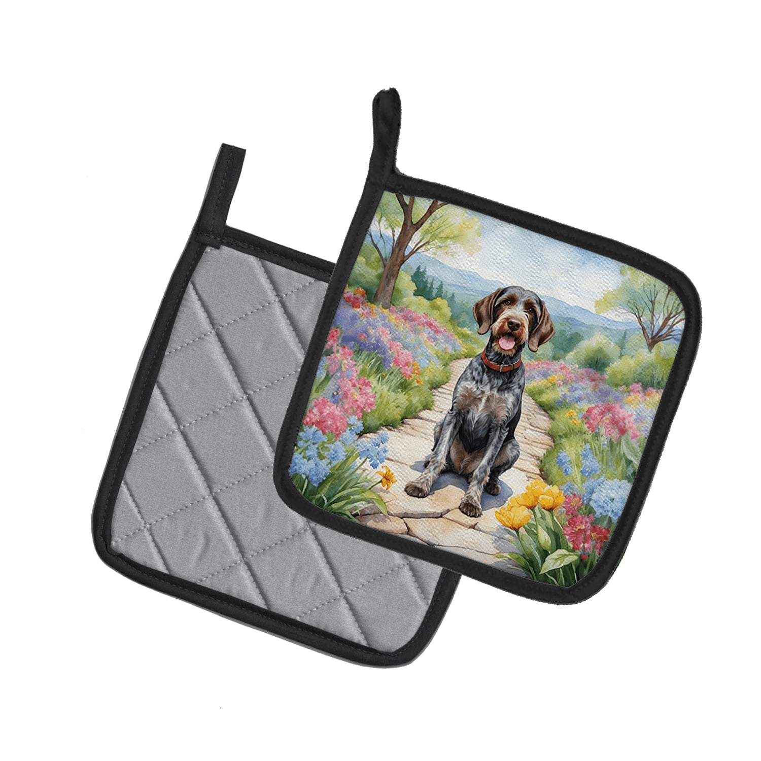 German Wirehaired Pointer Spring Path Pair of Pot Holders – Insulated, Quilted, Made in USA.
