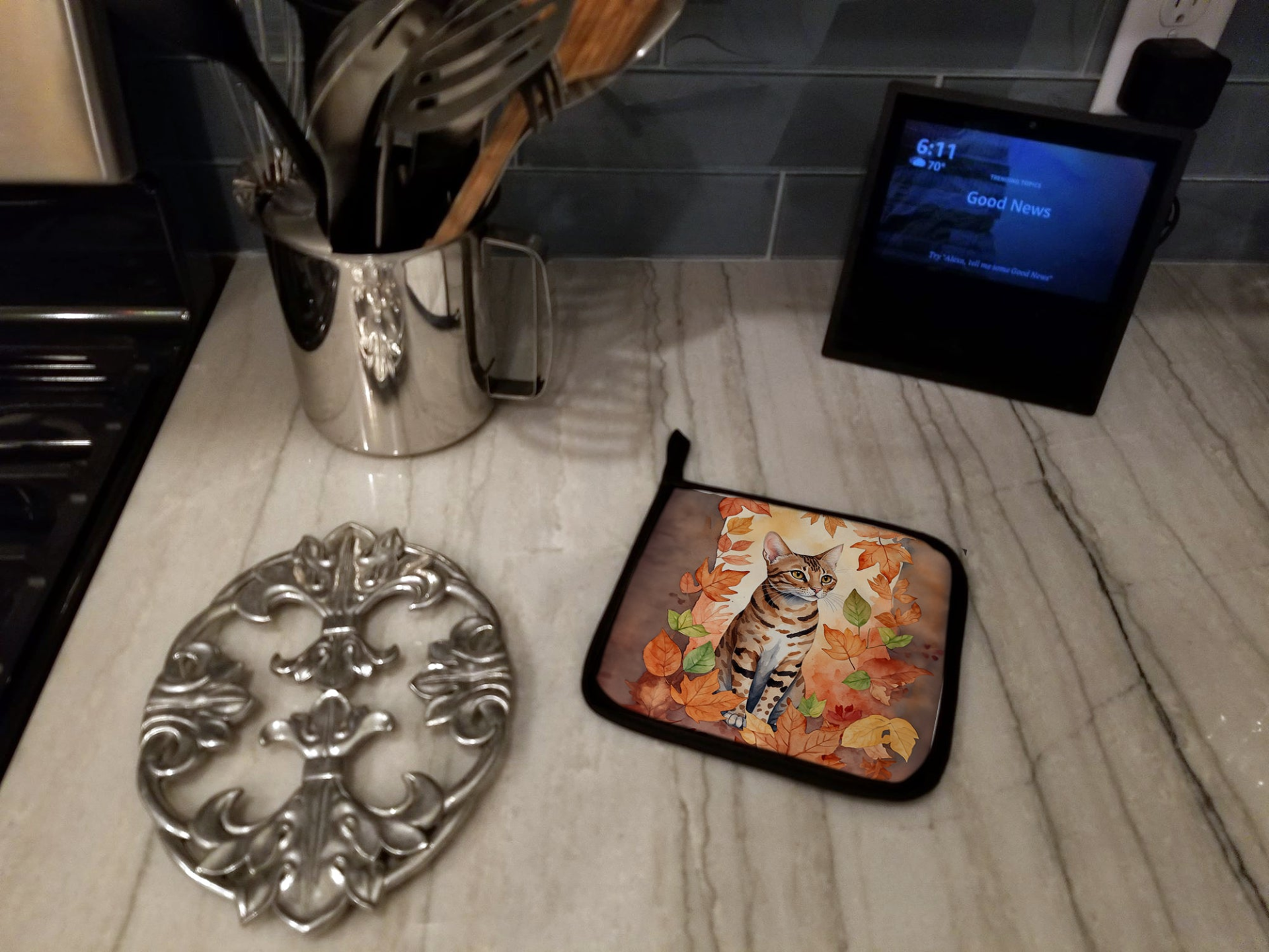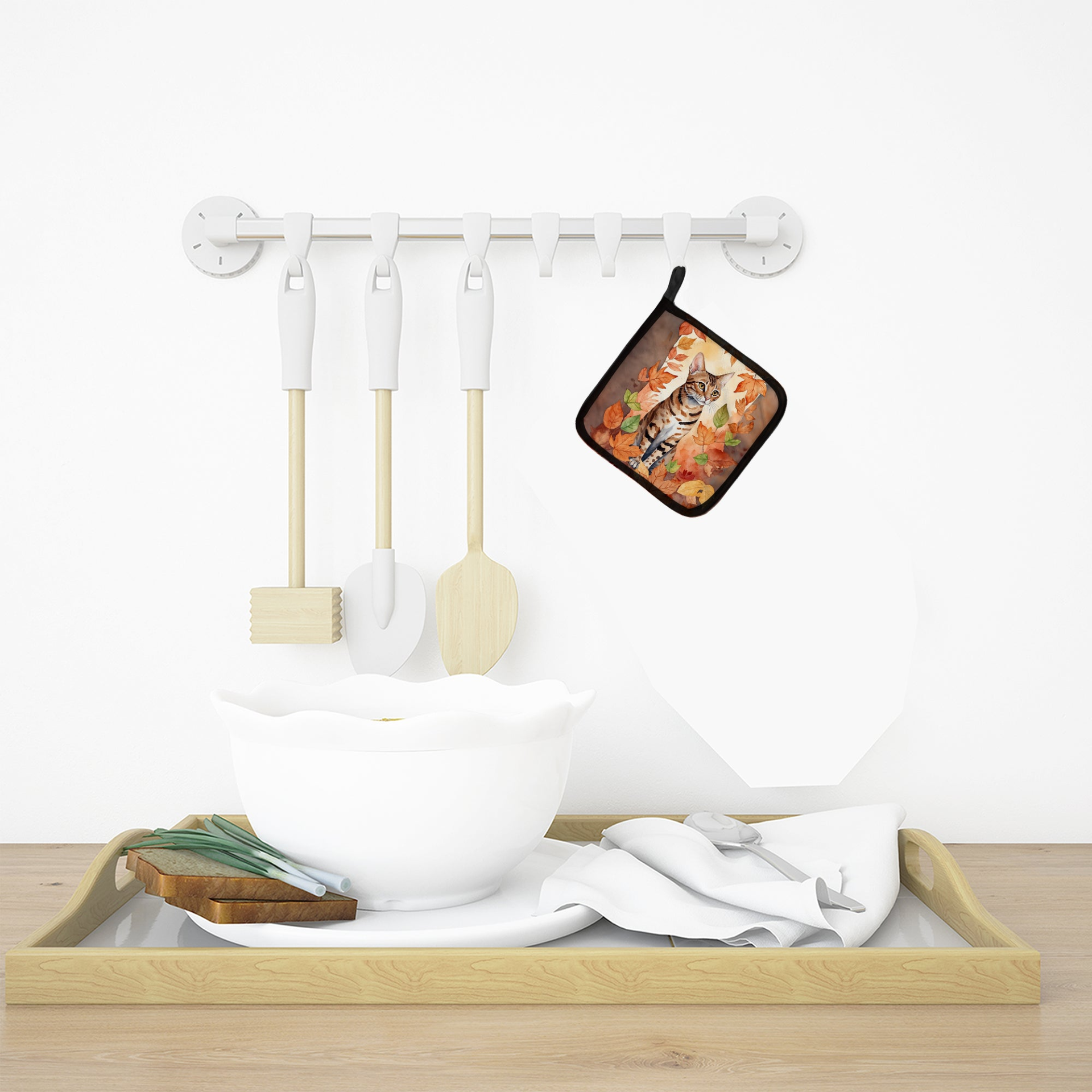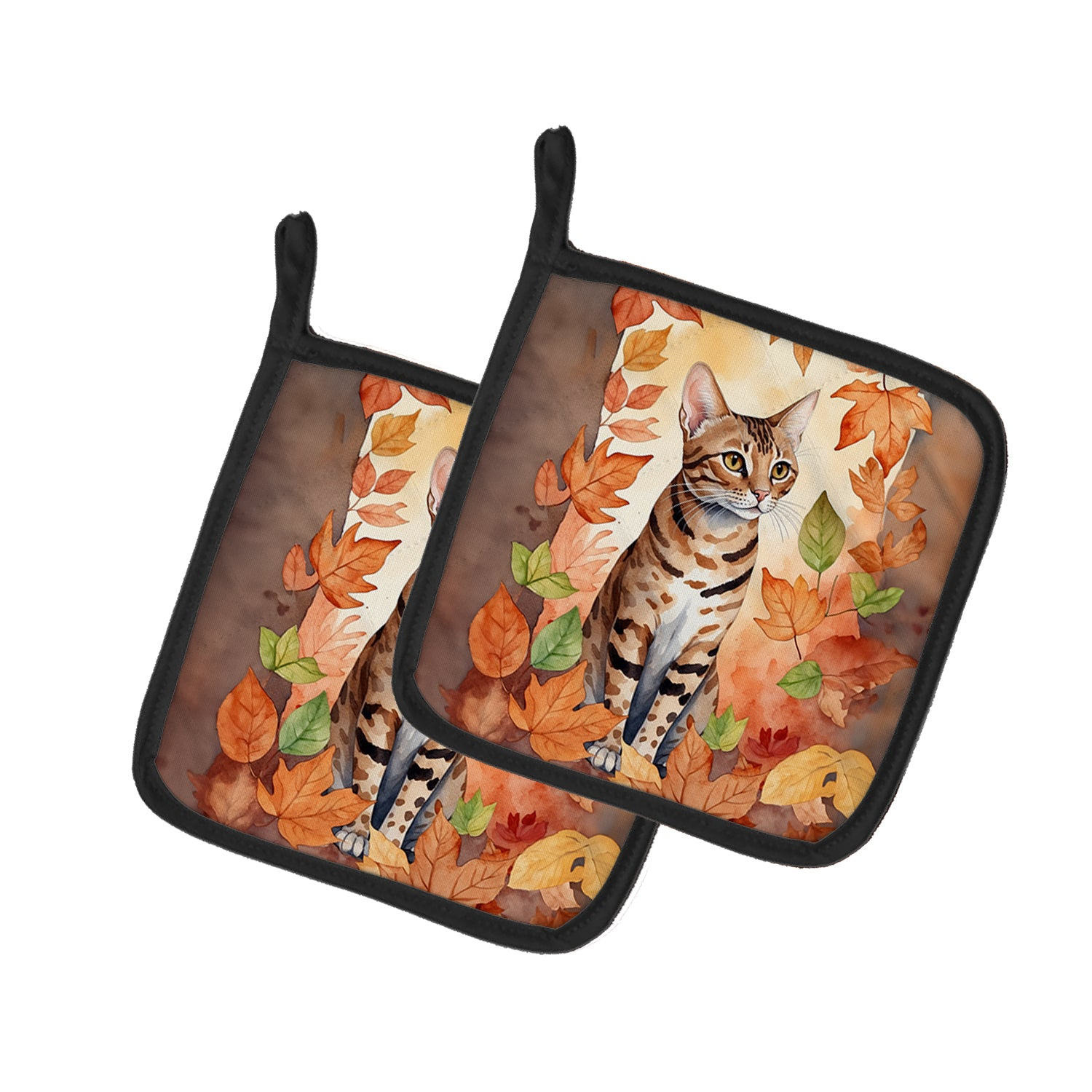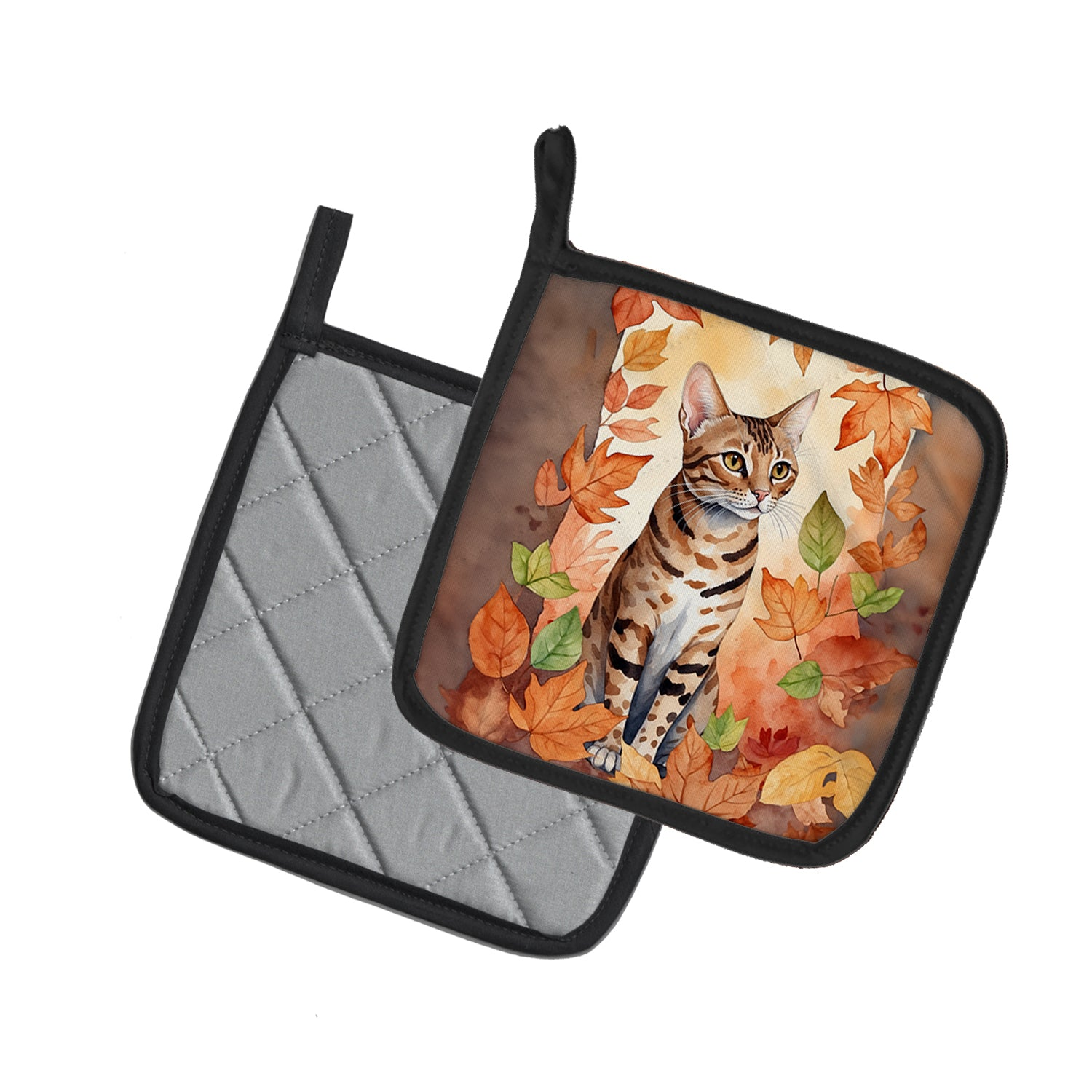 Ocicat Cat in Fall Leaves Pair of Pot Holders