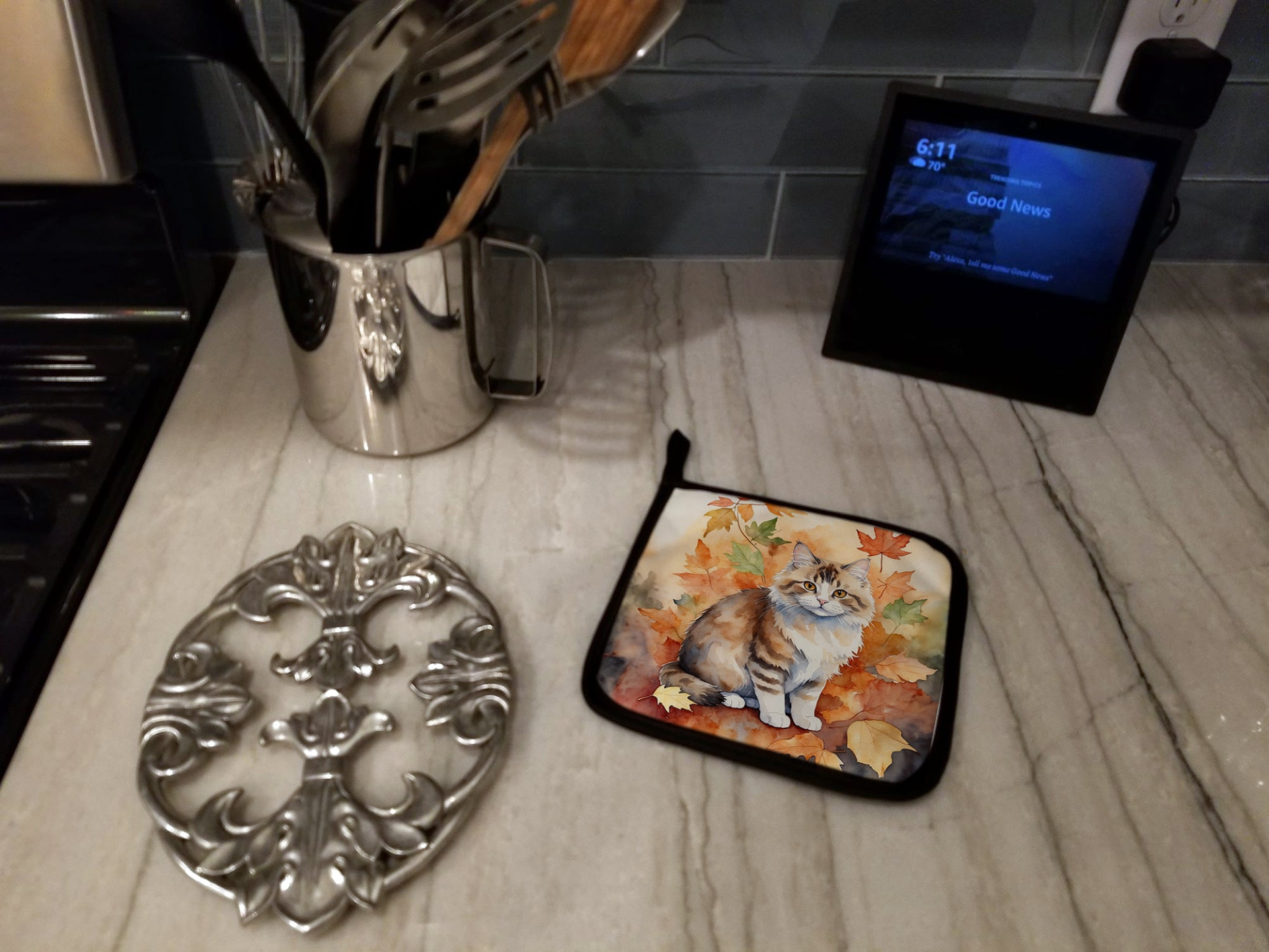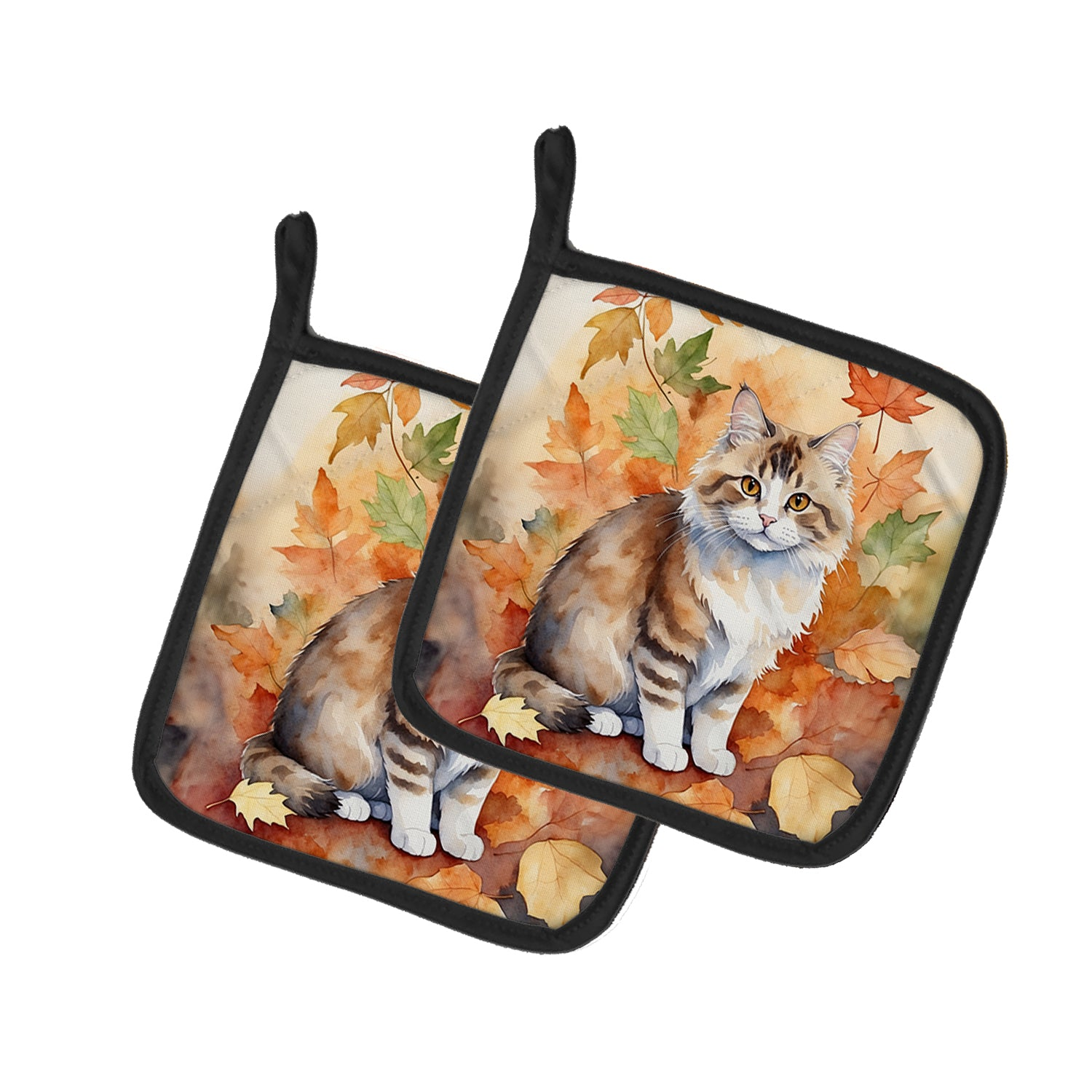Ragamuffin Cat in Fall Leaves Pair of Pot Holders