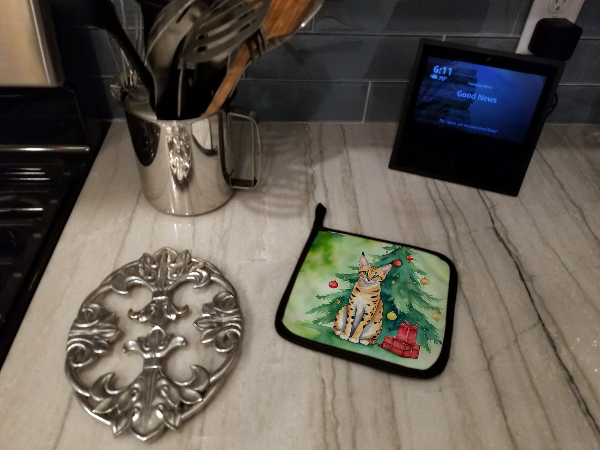 Serengeti Cat By the Christmas Tree Pair of Pot Holders