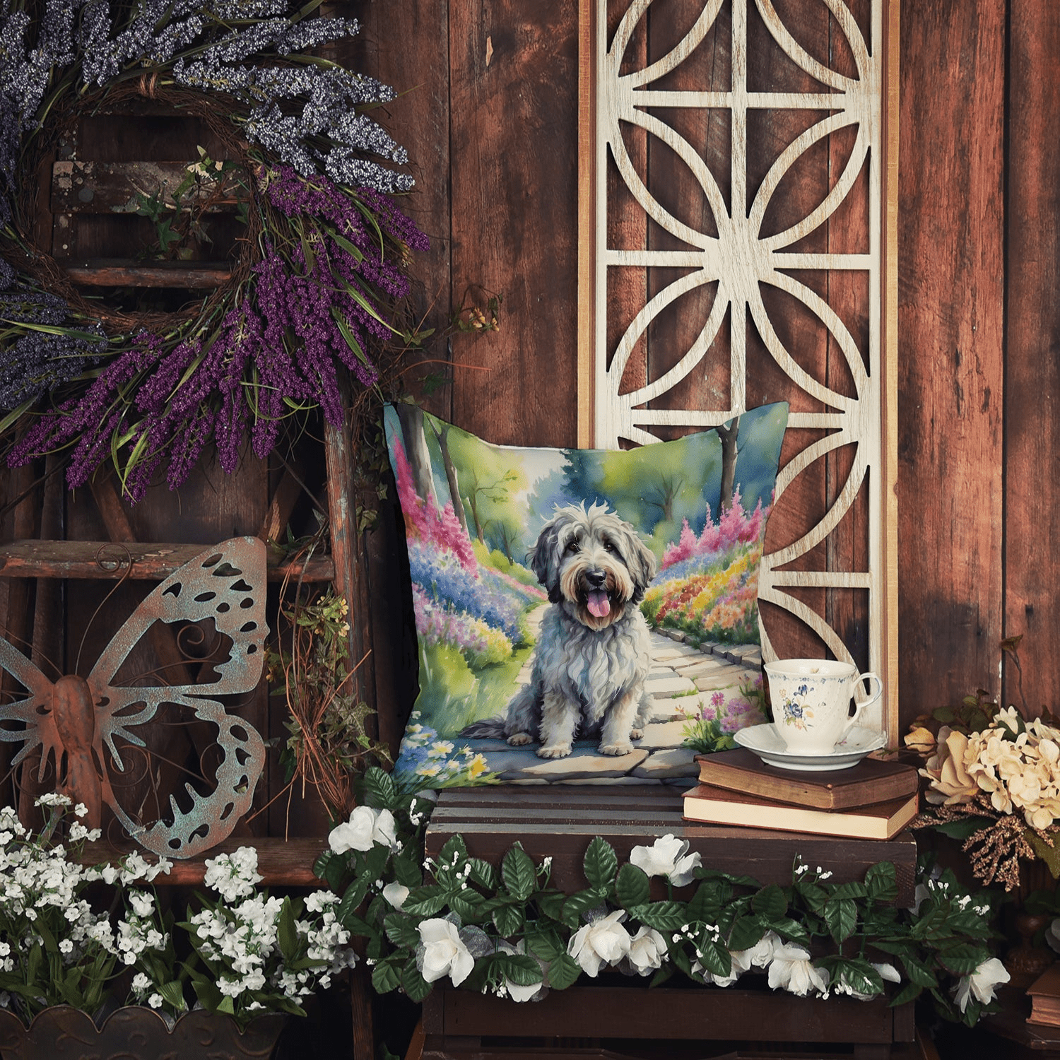 Throw Pillow featuring breed specific Bergamasco Sheepdog artwork. Revitalize your outdoor or indoor living space with Caroline's Treasures 18x18 Fabric Decorative Pillow. With a generously sized dimension of approximately 18 inches by 18 inches, this pillow makes a comfortable and aesthetic addition to any seating area. Made from a unique, water-resistant material developed by Caroline's Treasures, the pillow sham is 100% polyester fabric that's durable and ready to weather any condition. Its vibrant, full-color artwork will not fade over time as it is dyed with color-fast dyes. Whether you place it on your patio furniture, porch, veranda, or indoor couch, its soft canvas fabric ensures a cozy experience. The pillow is handcrafted in the United States, featuring a sham created from three pieces of fabric and a polyester insert for enduring shape and overstuffed comfort. Despite being robustly built to endure the outdoors, it is as soft and snug as your favorite indoor cushions. Please note, as all our pillows are handmade, sizes may vary slightly, adding to the charm of this unique decorative item.