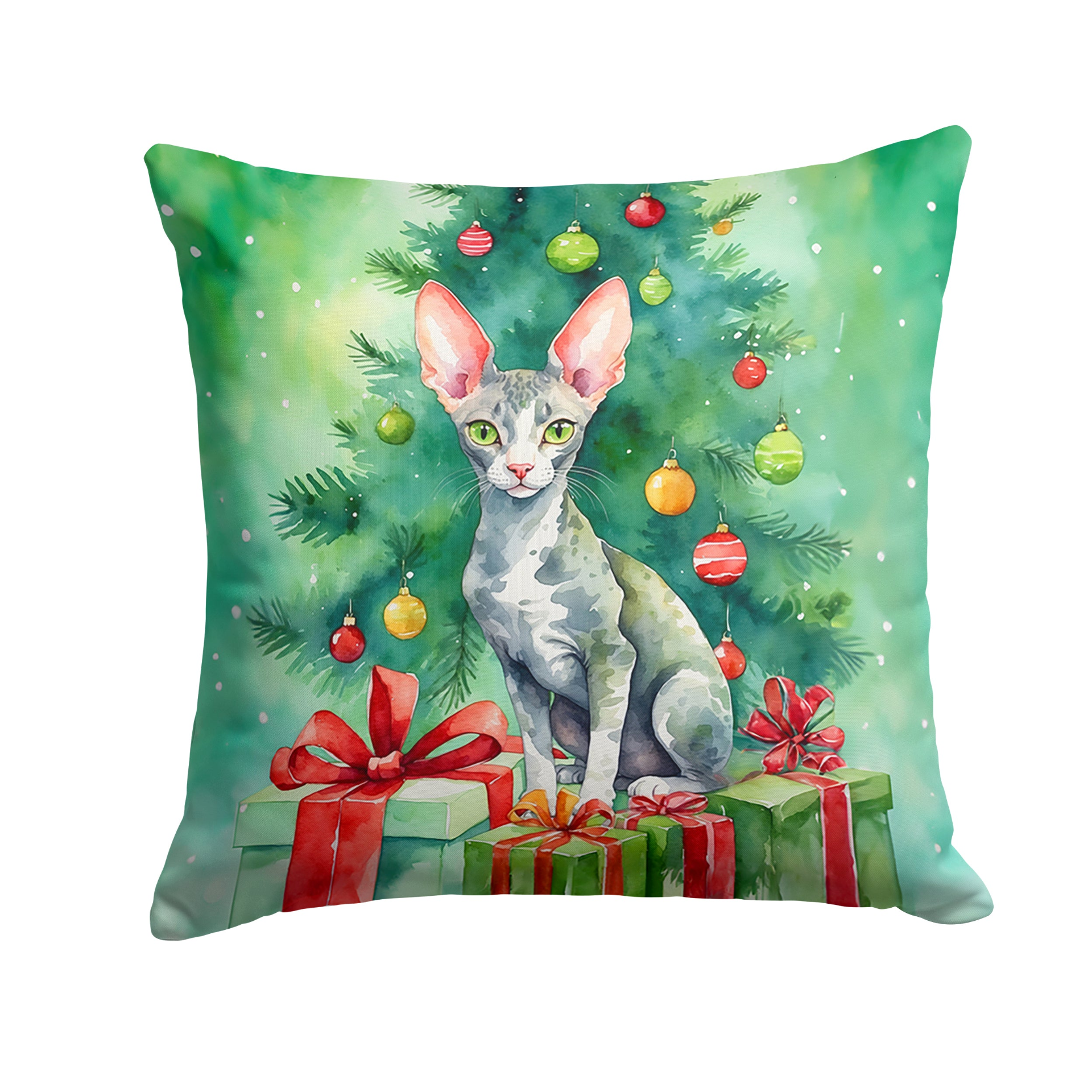 Throw Pillow featuring breed specific Cornish Rex artwork. Celebrate Christmas with this Christmas Pillow. Add a touch of vibrancy and comfort to your outdoor seating with Caroline's Treasures Fabric Decorative Pillow. Measuring approximately 14 inches by 14 inches, this outdoor pillow is crafted to elevate the appeal of your patio furniture, infusing it with vivid color and artistic flair. The pillow includes a 100% Polyester Fabric sham filled with a quality pillow form to provide superior comfort. Innovatively made from our brand new material, specifically woven for its water resistance, this pillow is designed for durability. The soft canvas fabric offers versatility in use, fit for your indoor couch or your outdoor patio, porch, or veranda. The fabric is dyed with colorfast dyes built for resilience against weather conditions, ensuring the pillow retains its beauty over time. Constructed by sewing three fabric pieces to create a sham, the polyester insert is then nestled inside to form the pillow, resulting in an overstuffed pillow that maintains its shape. Both the sham and the pillow insert are proudly made in the United States. As the pillows are handcrafted, there may be minor variations in size, further enhancing their unique charm. Experience comfort in style with Caroline's Treasures Fabric Decorative Pillow.