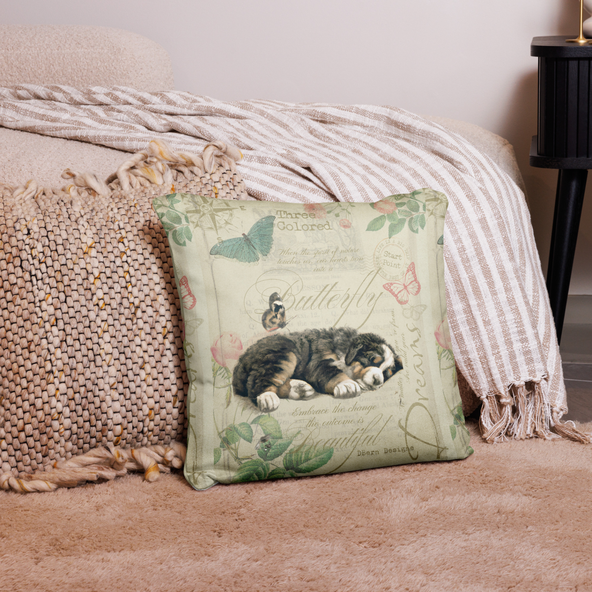 A beautiful and unique Bernese Mountain Dog design in vintage colors will bring in your home a romantic look ,This soft, comfy pillow case is just what you need to do that.