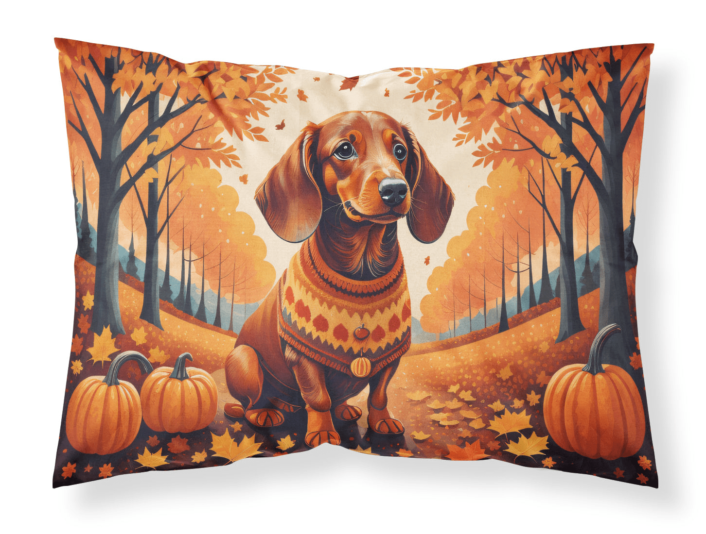 Standard Pillowcase featuring breed specific Dachshund artwork. Experience an upgrade in your sleeping comfort with our Fabric Standard Pillowcase, designed to balance style, comfort, and practicality. Showcasing vibrant artwork on the front and a standard white on the back, this pillowcase is more than a functional item—it's an expression of your personal style. Crafted from premium moisture-wicking material, our pillowcase ensures a pleasant sleeping experience. The breathable performance fabric allows for excellent air circulation, keeping you cool and comfortable throughout the night while also demonstrating exceptional quality. This pillowcase, measuring 30 x 20.5 inches with a slender 0.15 inch thickness, and weighing only 0.25 lbs, fits a standard pillow perfectly. Maintaining our pillowcase is hassle-free. It requires no ironing—simply wash in cold water and dry at medium heat. Bring art and luxury into your bedroom with our Fabric Standard Pillowcase. Its unique design and top-tier fabric contribute to a relaxing and rejuvenating sleep experience. Brighten your bedroom decor while enhancing your sleep with our high-performance pillowcase.