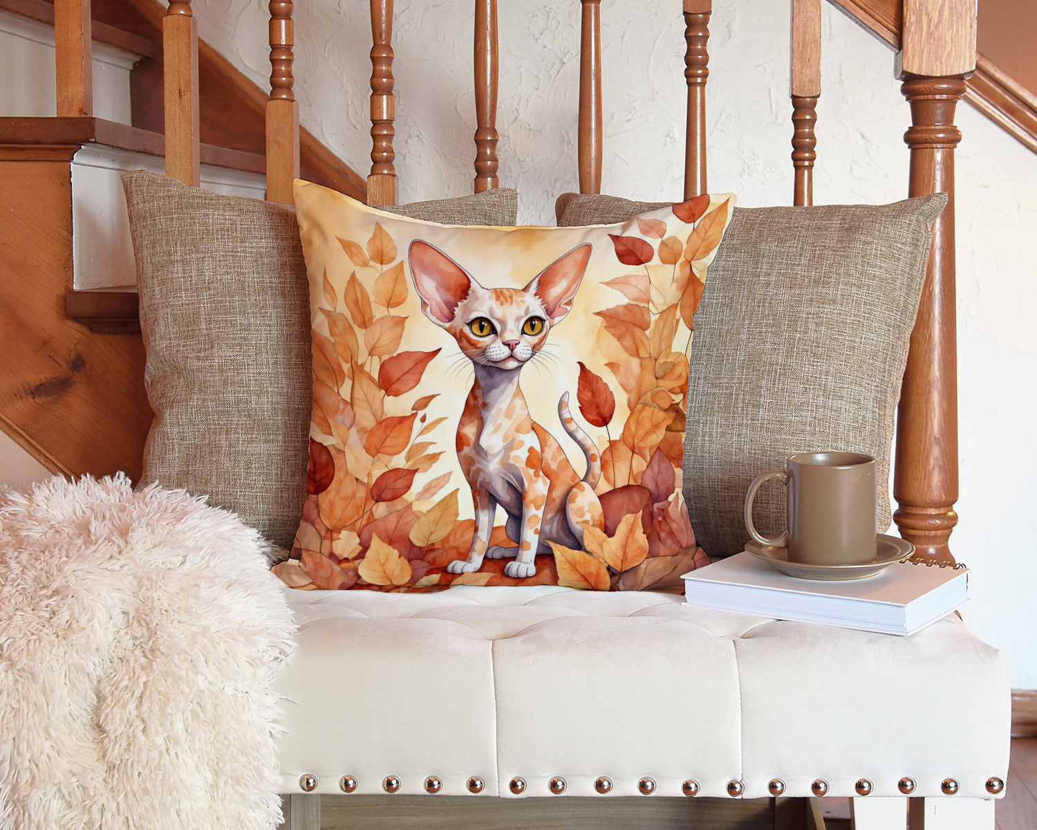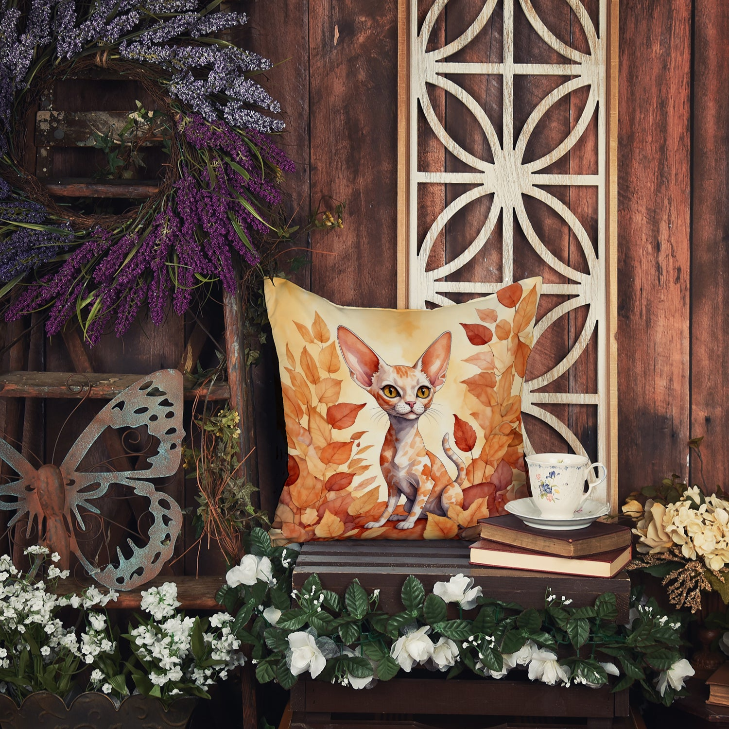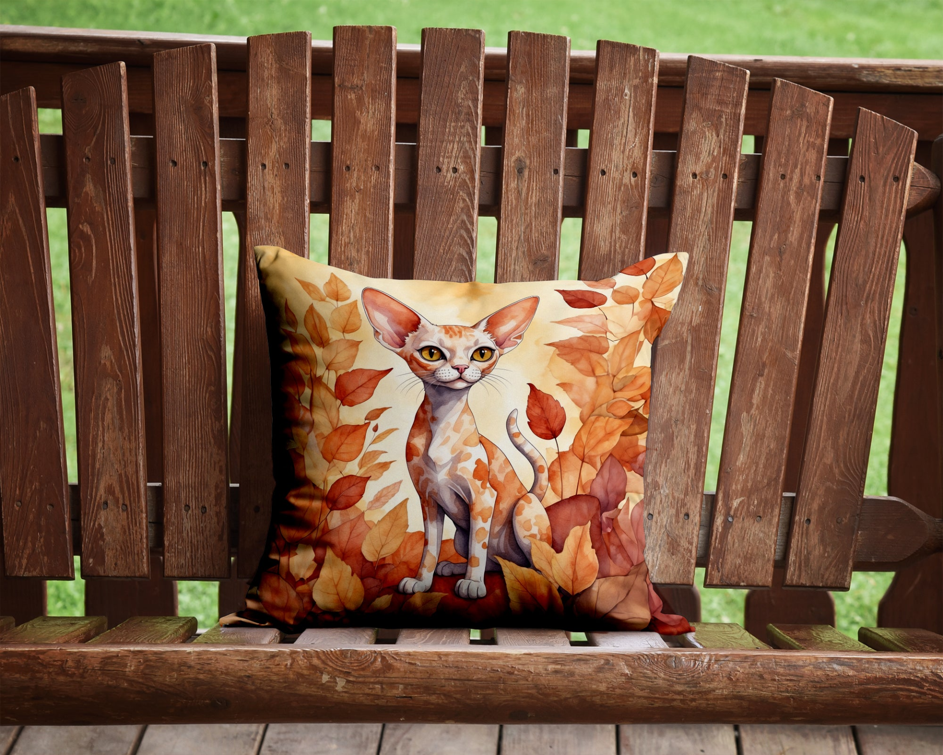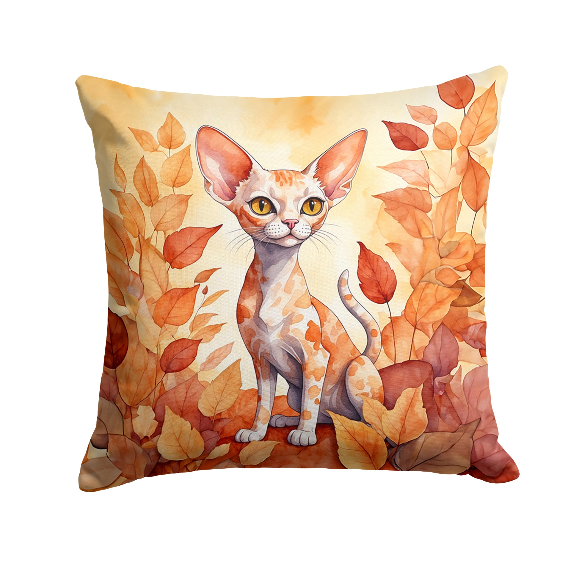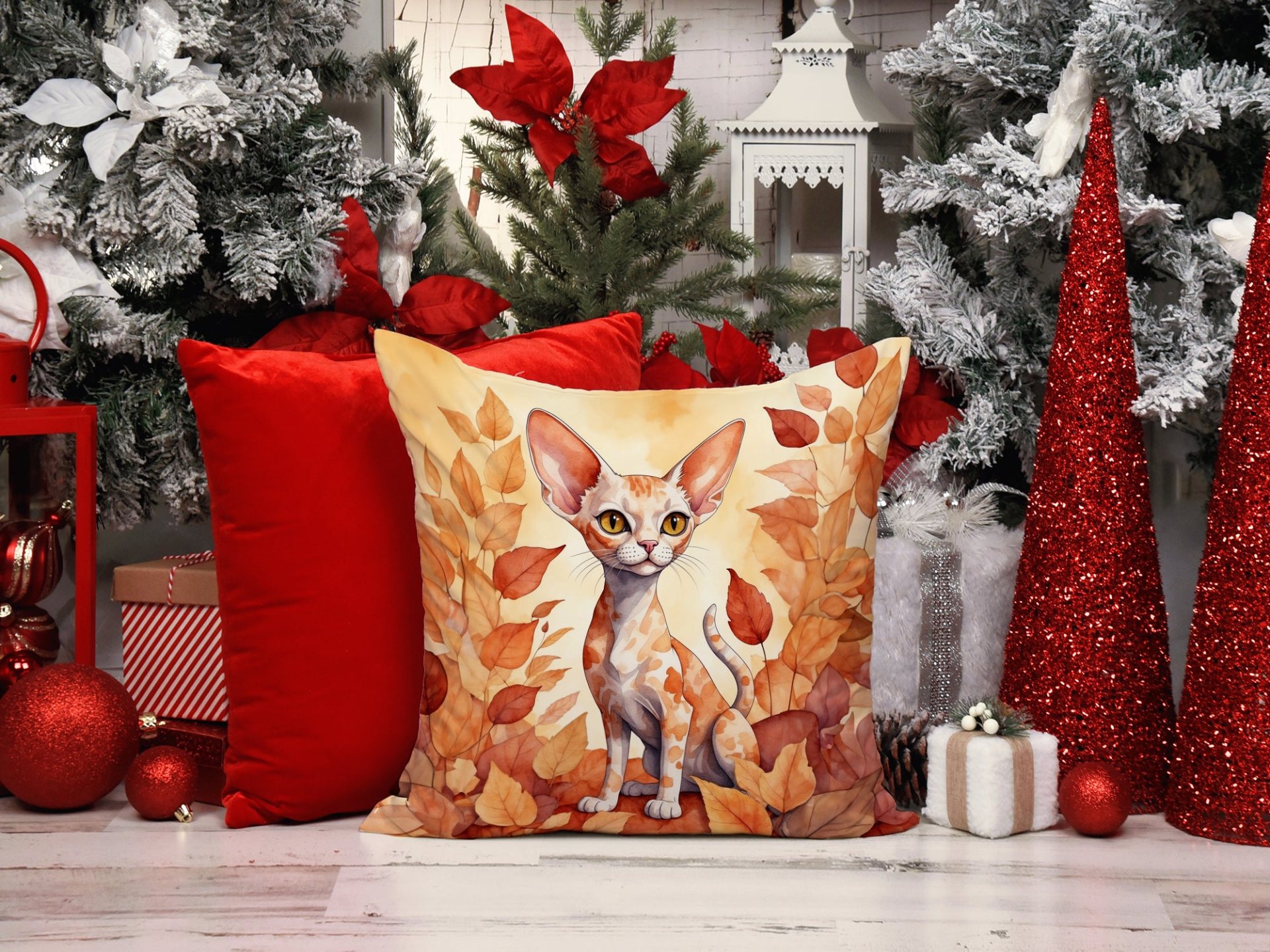 Throw Pillow featuring breed specific Devon Rex artwork. Celebrate Halloween with this Halloween Pillow. Add a touch of vibrancy and comfort to your outdoor seating with Caroline's Treasures Fabric Decorative Pillow. Measuring approximately 14 inches by 14 inches, this outdoor pillow is crafted to elevate the appeal of your patio furniture, infusing it with vivid color and artistic flair. The pillow includes a 100% Polyester Fabric sham filled with a quality pillow form to provide superior comfort. Innovatively made from our brand new material, specifically woven for its water resistance, this pillow is designed for durability. The soft canvas fabric offers versatility in use, fit for your indoor couch or your outdoor patio, porch, or veranda. The fabric is dyed with colorfast dyes built for resilience against weather conditions, ensuring the pillow retains its beauty over time. Constructed by sewing three fabric pieces to create a sham, the polyester insert is then nestled inside to form the pillow, resulting in an overstuffed pillow that maintains its shape. Both the sham and the pillow insert are proudly made in the United States. As the pillows are handcrafted, there may be minor variations in size, further enhancing their unique charm. Experience comfort in style with Caroline's Treasures Fabric Decorative Pillow.