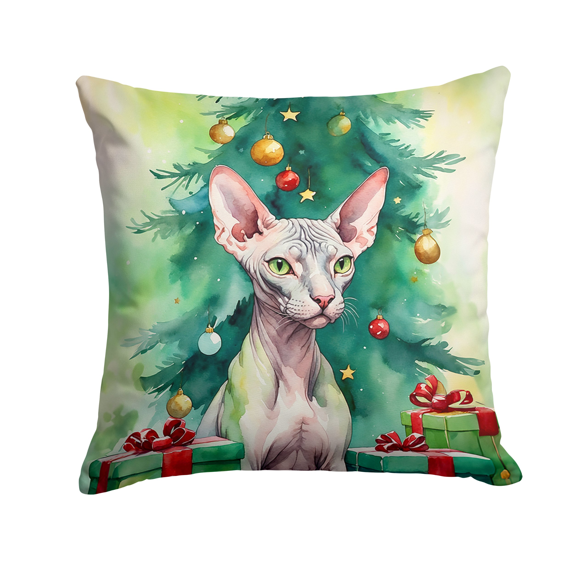 Throw Pillow featuring breed specific Donskoy Don Sphynx artwork. Celebrate Christmas with this Christmas Pillow. Add a touch of vibrancy and comfort to your outdoor seating with Caroline's Treasures Fabric Decorative Pillow. Measuring approximately 14 inches by 14 inches, this outdoor pillow is crafted to elevate the appeal of your patio furniture, infusing it with vivid color and artistic flair. The pillow includes a 100% Polyester Fabric sham filled with a quality pillow form to provide superior comfort. Innovatively made from our brand new material, specifically woven for its water resistance, this pillow is designed for durability. The soft canvas fabric offers versatility in use, fit for your indoor couch or your outdoor patio, porch, or veranda. The fabric is dyed with colorfast dyes built for resilience against weather conditions, ensuring the pillow retains its beauty over time. Constructed by sewing three fabric pieces to create a sham, the polyester insert is then nestled inside to form the pillow, resulting in an overstuffed pillow that maintains its shape. Both the sham and the pillow insert are proudly made in the United States. As the pillows are handcrafted, there may be minor variations in size, further enhancing their unique charm. Experience comfort in style with Caroline's Treasures Fabric Decorative Pillow.