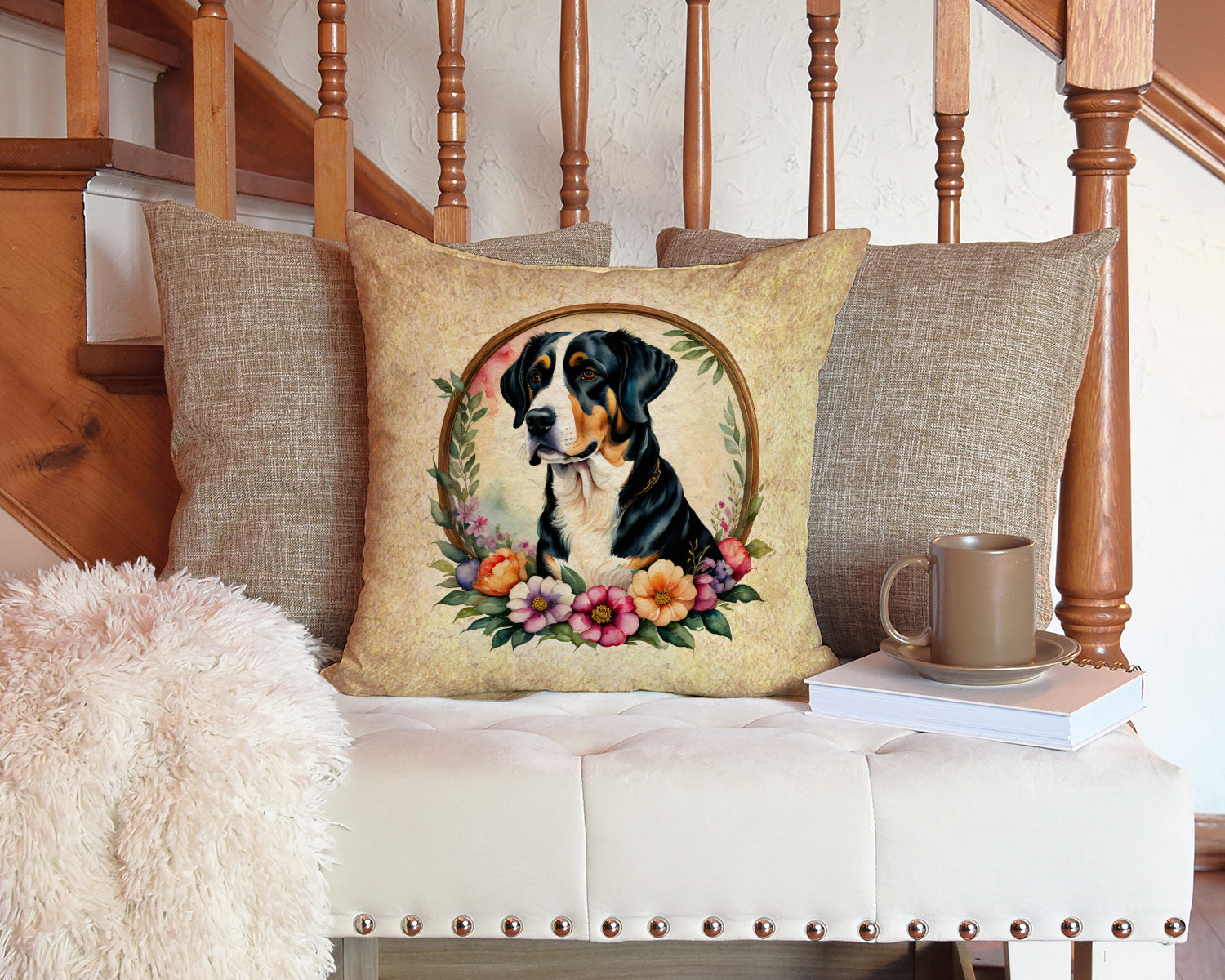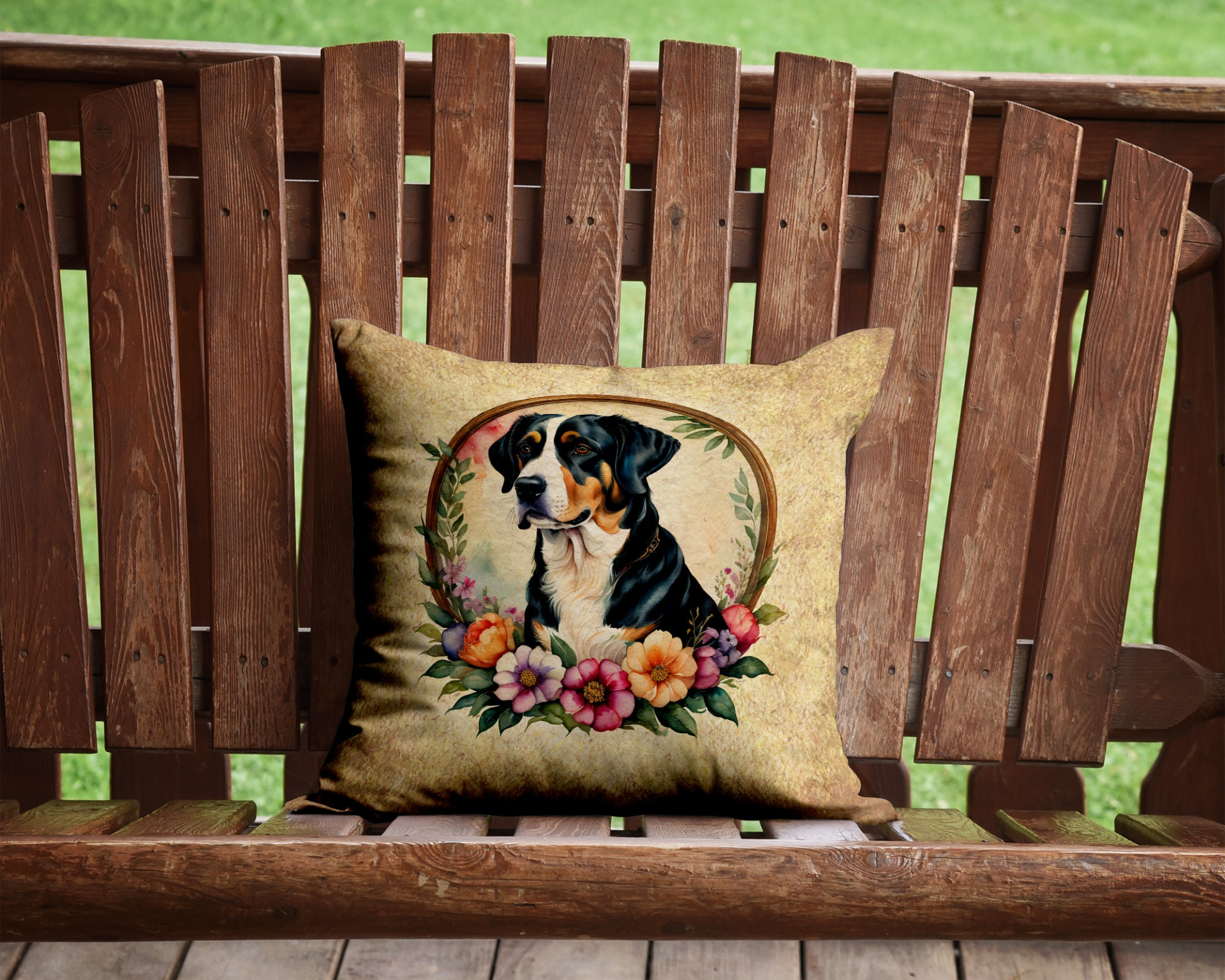 Greater Swiss Mountain Dog and Flowers Throw Pillow