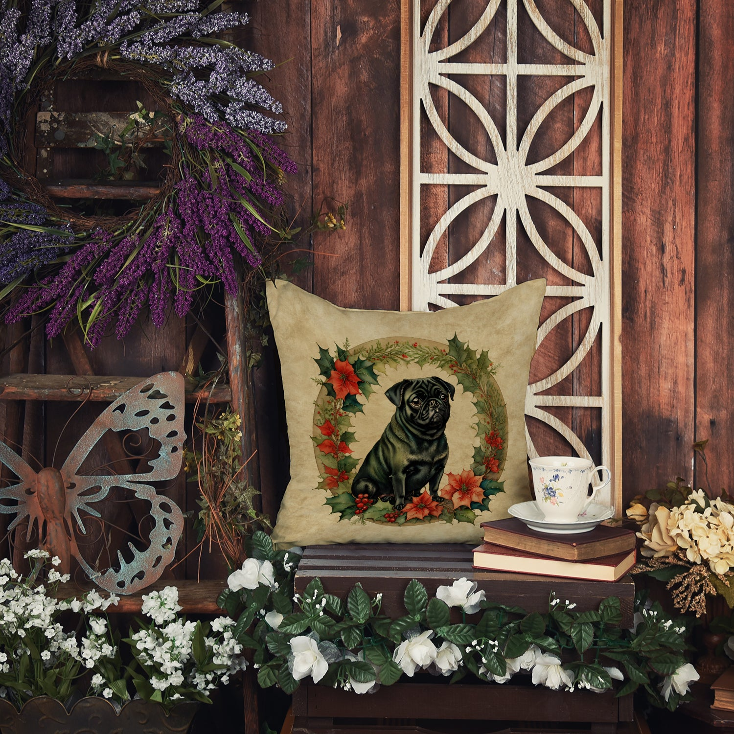 Throw Pillow featuring breed specific Pug artwork. Celebrate Christmas with this Christmas Pillow. Revitalize your outdoor or indoor living space with Caroline's Treasures 18x18 Fabric Decorative Pillow. With a generously sized dimension of approximately 18 inches by 18 inches, this pillow makes a comfortable and aesthetic addition to any seating area. Made from a unique, water-resistant material developed by Caroline's Treasures, the pillow sham is 100% polyester fabric that's durable and ready to weather any condition. Its vibrant, full-color artwork will not fade over time as it is dyed with color-fast dyes. Whether you place it on your patio furniture, porch, veranda, or indoor couch, its soft canvas fabric ensures a cozy experience. The pillow is handcrafted in the United States, featuring a sham created from three pieces of fabric and a polyester insert for enduring shape and overstuffed comfort. Despite being robustly built to endure the outdoors, it is as soft and snug as your favorite indoor cushions. Please note, as all our pillows are handmade, sizes may vary slightly, adding to the charm of this unique decorative item.